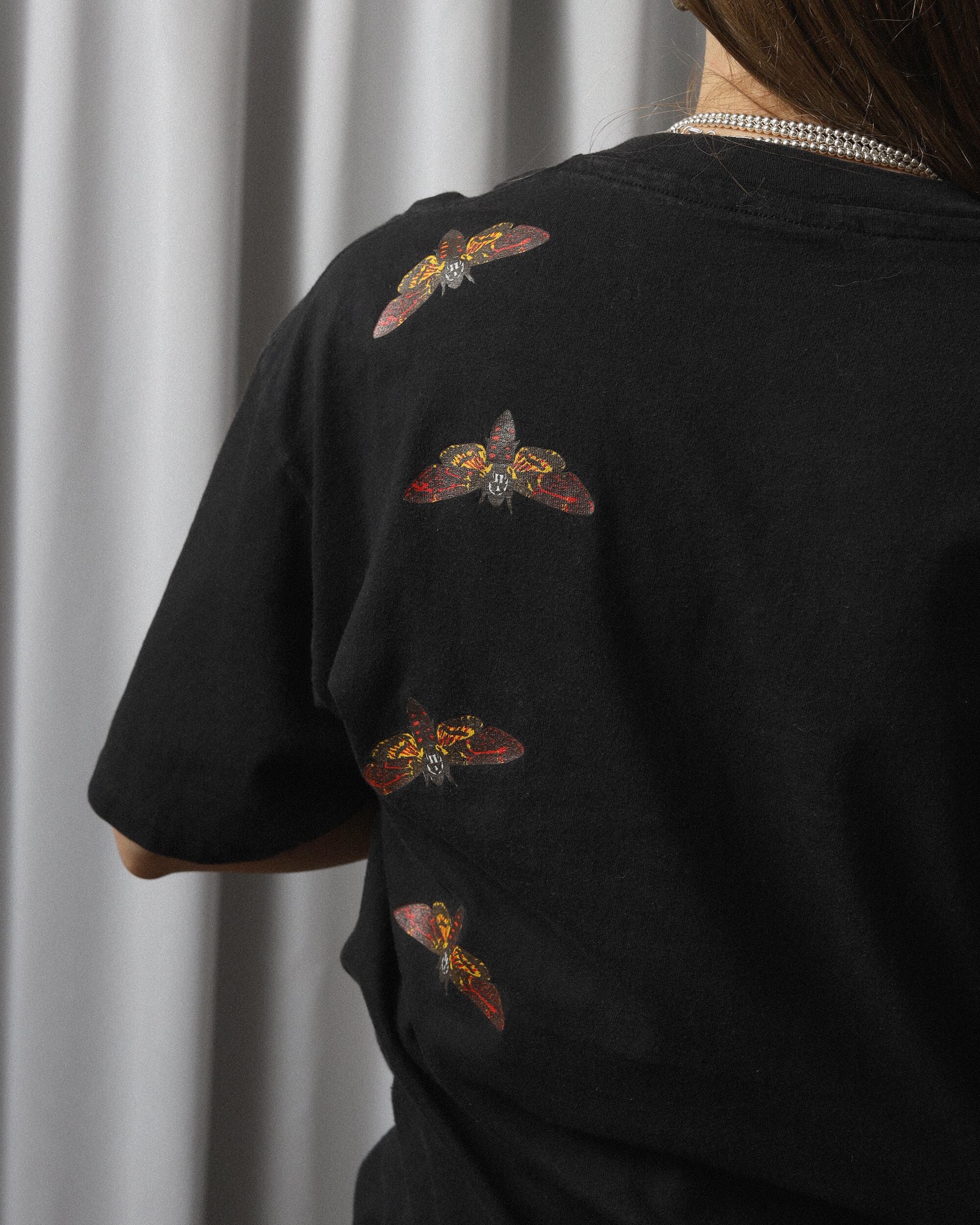 Era : c. 1991 Label : Hanes / Made in USA Materials : Cotton Condition : 目立ったキズやシミなし Color : Faded Black Size : 肩幅53cm / 身幅56cm / 着丈72cm / 袖丈22cm *採寸は平置きで採寸しております。多少の誤差は御了承下さい。 Model:156cm Care : 手洗い, 洗濯機クリーニングモード