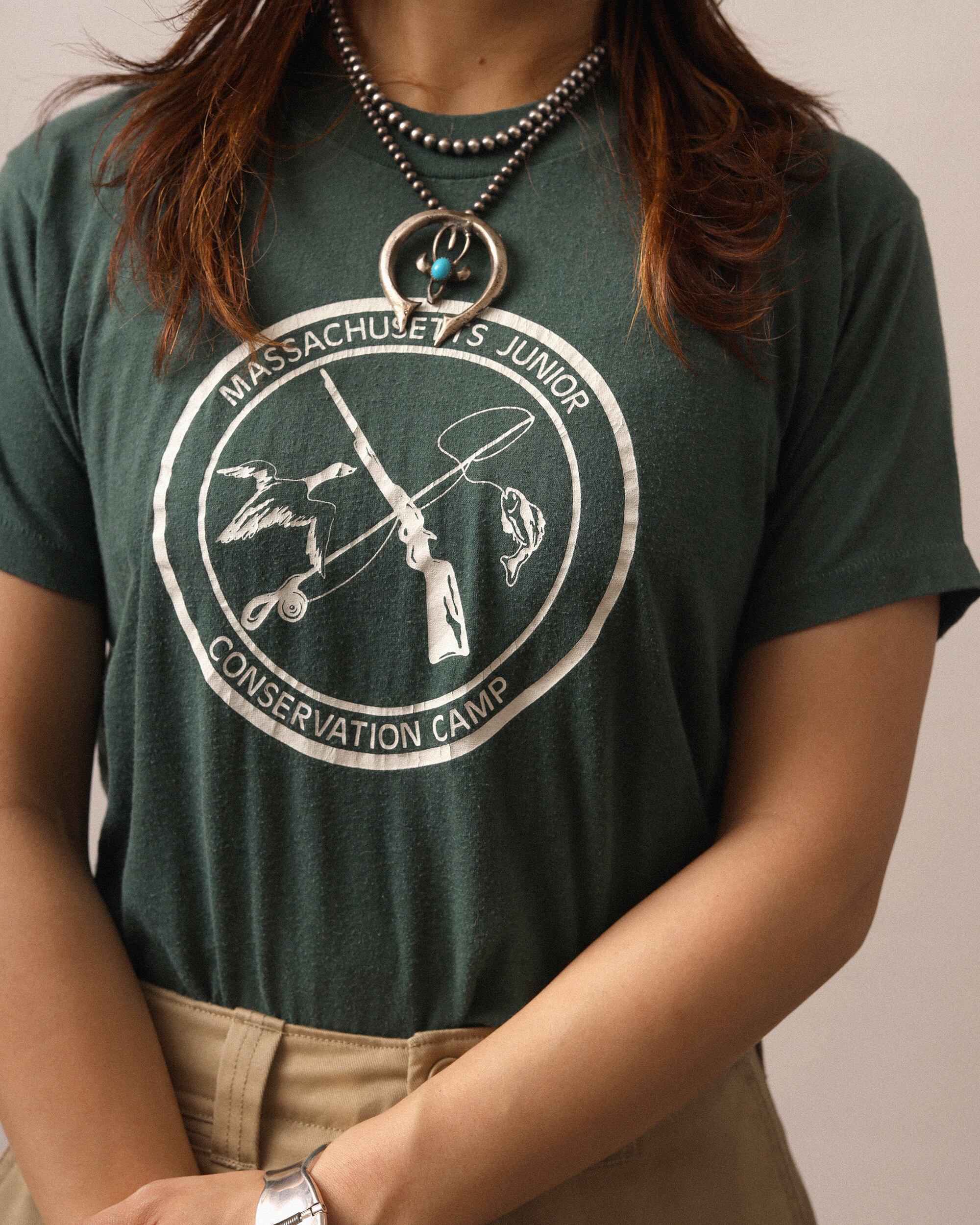 Era : c. 1980 Label : Medallion / Made in USA Materials : Cotton, Poly Condition : 目立ったキズやシミなし Color : Faded Green Size : 肩幅39cm / 身幅43cm / 着丈59cm / 袖丈16cm *採寸は平置きで採寸しております。多少の誤差は御了承下さい。 Model:163cm Care : 手洗い, 洗濯機クリーニングモード