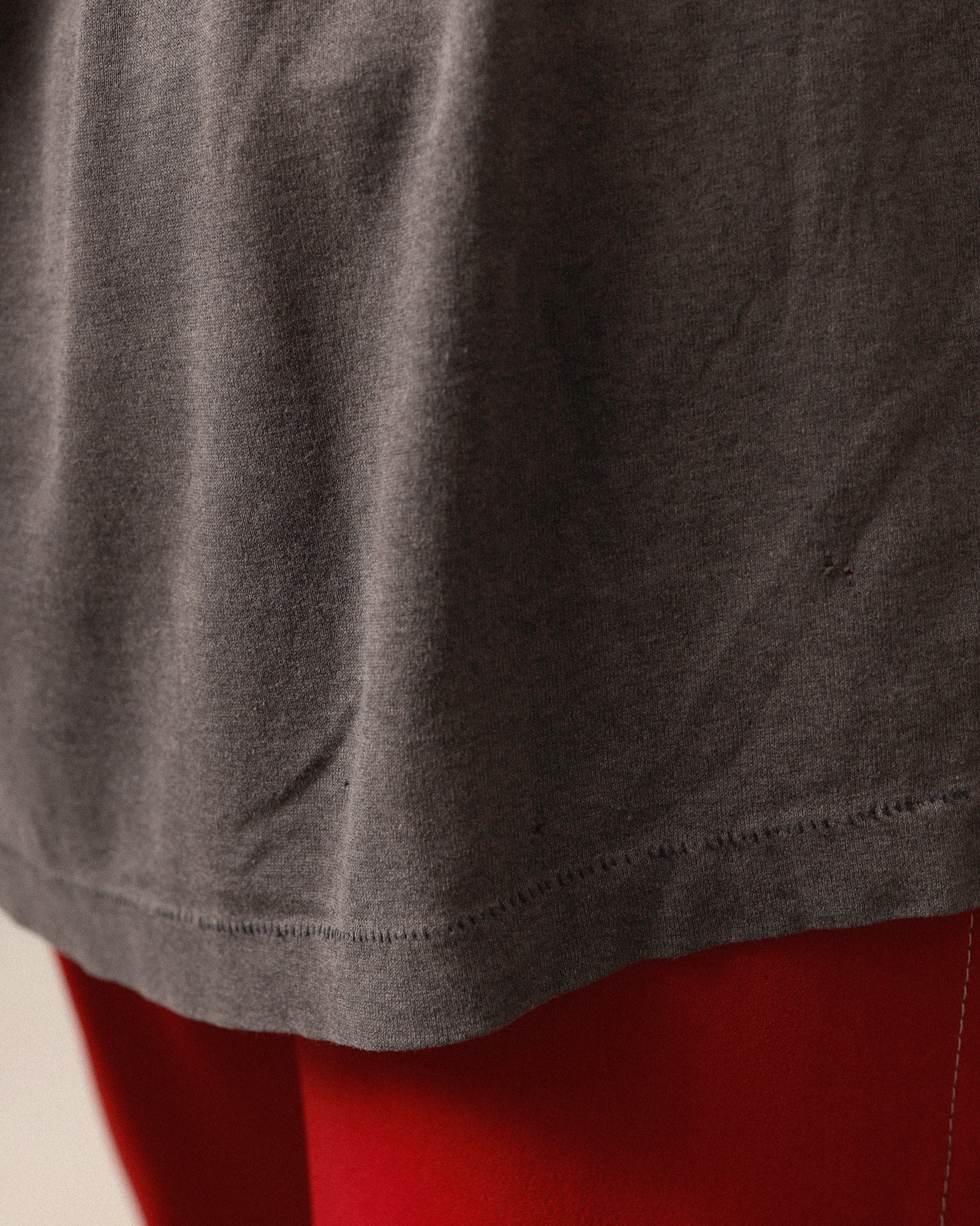 Era : c. 1987 Label : Unknown / Made in --- Materials : Cotton, Poly Condition : 腹部, バック下部に複数穴 Color : Faded Black Size : 肩幅49cm / 身幅54cm / 着丈65cm / 袖丈21cm *採寸は平置きで採寸しております。多少の誤差は御了承下さい。 Model:156cm Care : 手洗い, 洗濯機クリーニングモード