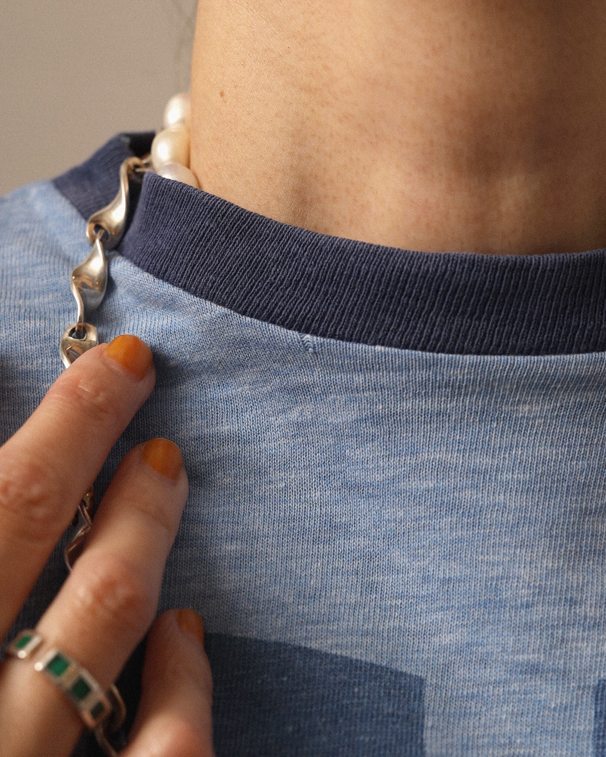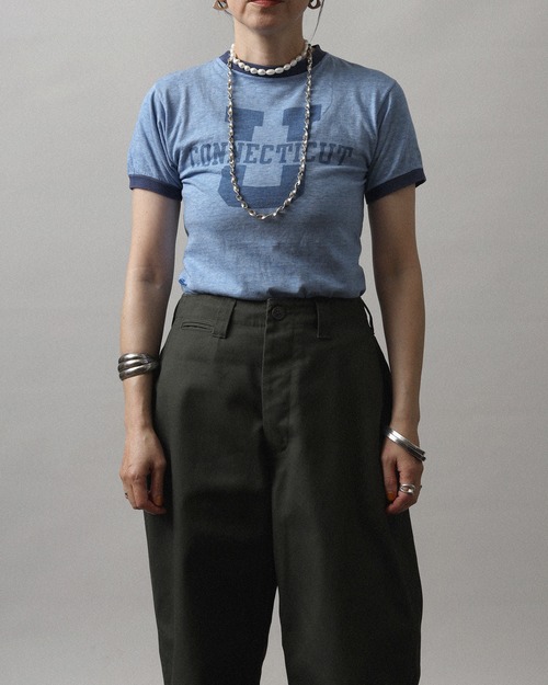 Era : c. 1980 Label : Champion / Made in USA Materials : Cotton, Acrylic Condition : 襟ぐりキズ, 右脇生地ヌケ Color : Faded Blue Size : 肩幅38cm / 身幅40cm / 着丈55cm / 袖丈16cm *採寸は平置きで採寸しております。多少の誤差は御了承下さい。 Model:156cm Care : 手洗い, 洗濯機クリーニングモード
