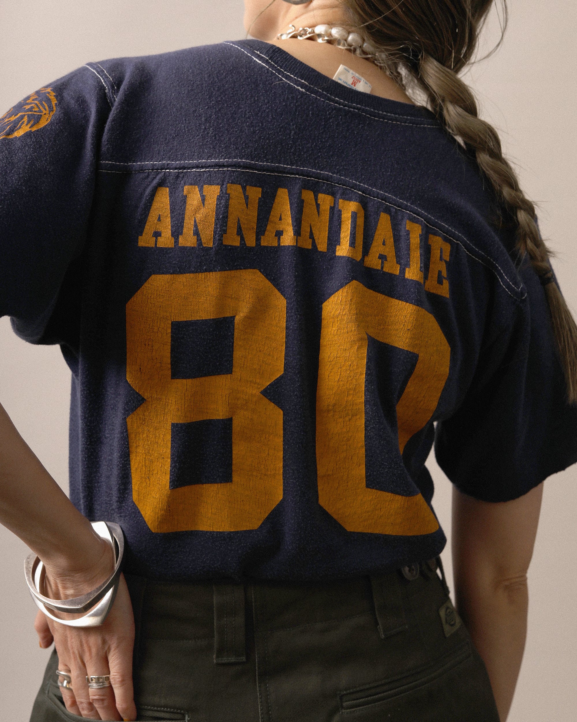 Era : c. 1980 Label : Soffe Athletic / Made in USA Materials : Cotton, Poly Condition : 袖カットオフ Color : Faded Navy Size : 肩幅37cm / 身幅44cm / 着丈61cm / 袖丈15cm *採寸は平置きで採寸しております。多少の誤差は御了承下さい。 Model:156cm Care : 手洗い, 洗濯機クリーニングモード