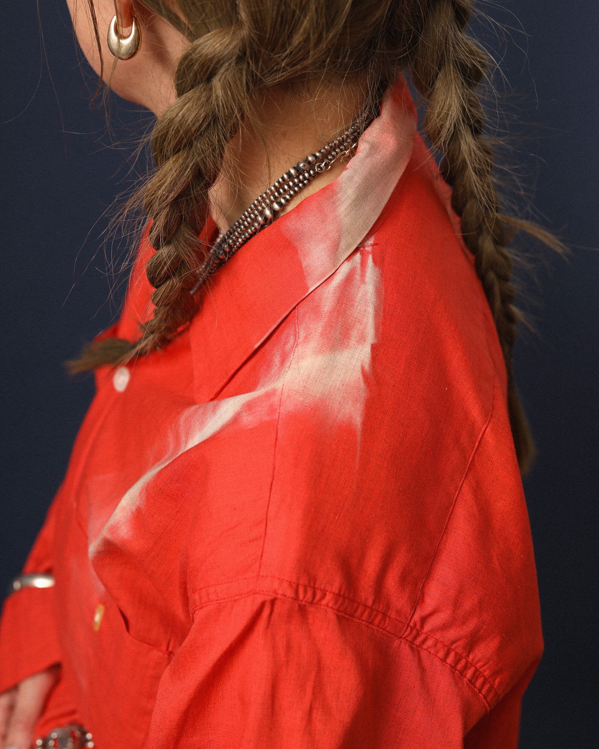 Era : c.1960 Label : Sportswear / Made in --- Materials : Cotton Condition : たたみに沿ってフェード Color : Faded Red Size : 肩幅45cm / 身幅54cm / 着丈69cm / 袖丈58cm *採寸は平置きで採寸しております。多少の誤差は御了承下さい。 Model:156cm Care : 洗濯機クリーニングモード