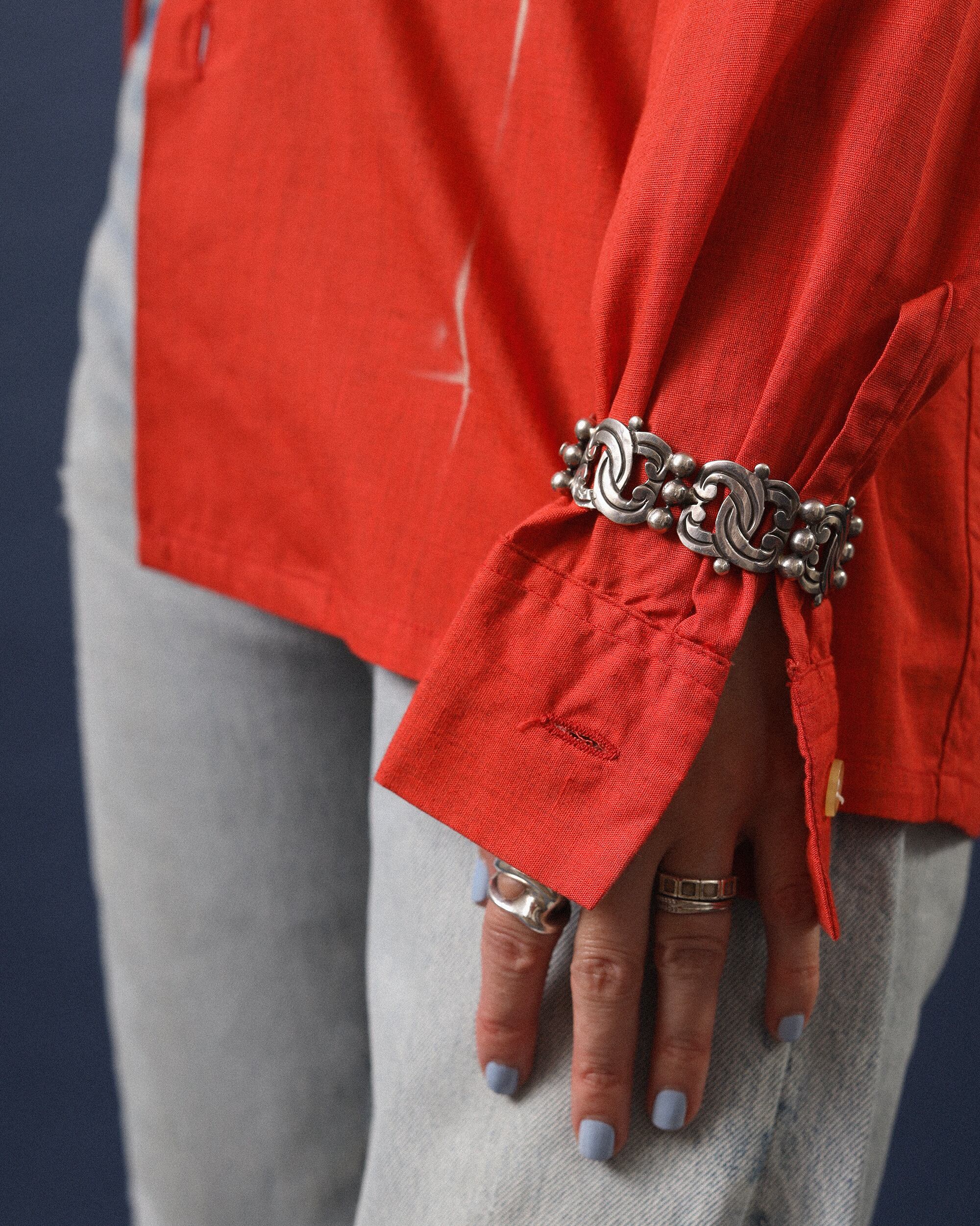 シルバーの渋い味わい、酸化した風合いを楽しんで頂くため為、磨き、研磨を行なっていない状態となります。
