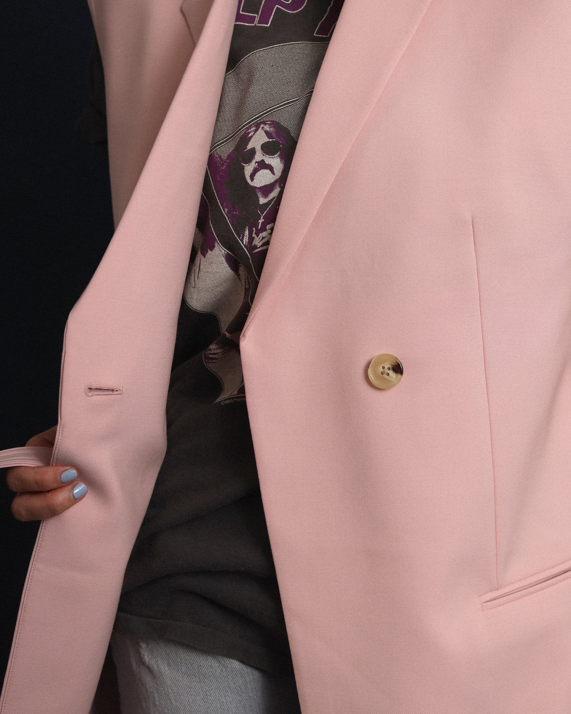 Era : c.2000-2010 Label : Helmut Lang / Made in China Materials : Linen, Wool, Viscose, Poly Condition : 目立ったキズやシミなし Color : Pink Size 2 : 肩幅42cm / 身幅46cm / 着丈74cm *採寸は平置きで採寸しております。多少の誤差は御了承下さい。 Model:156cm Care : ドライクリーニング