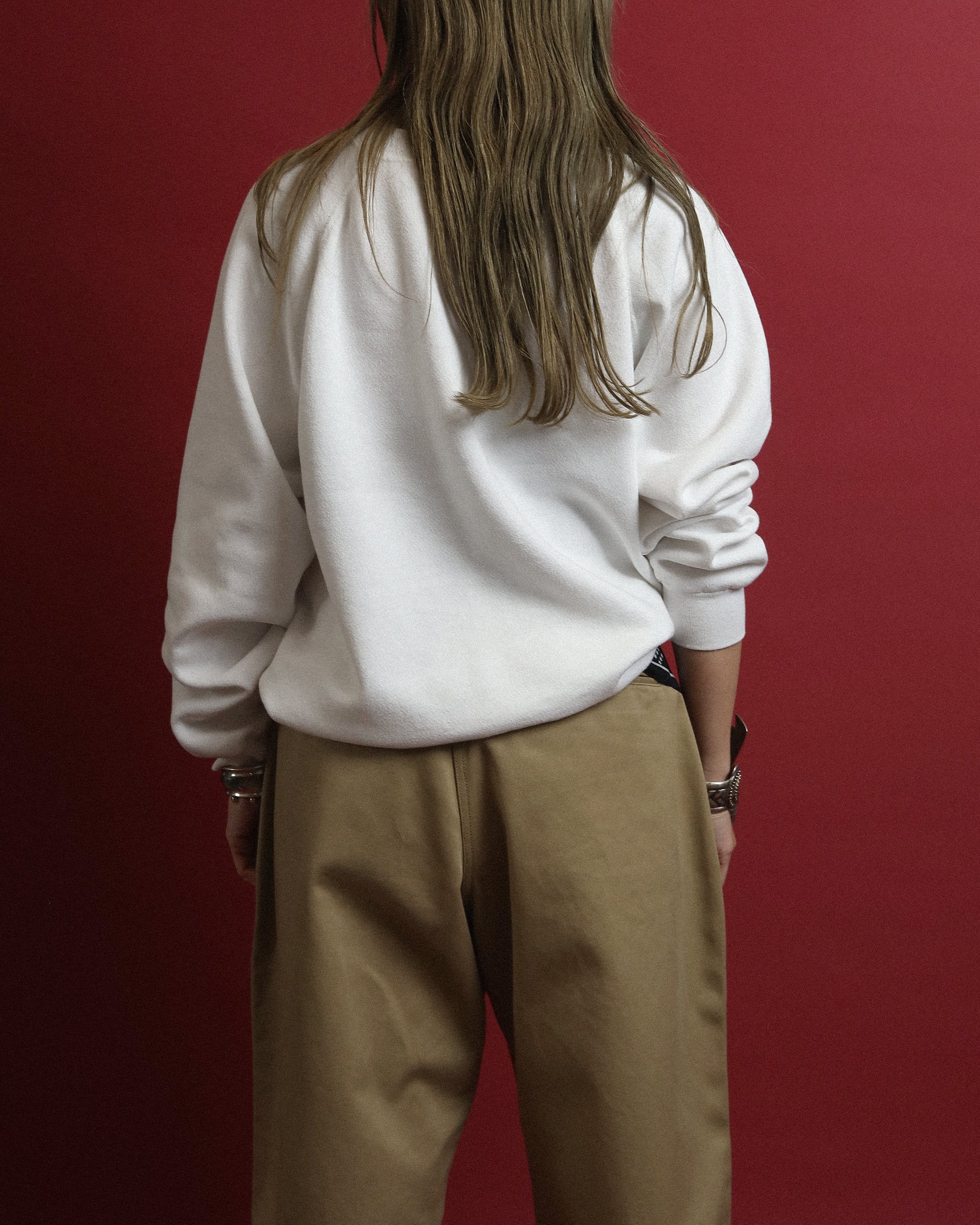 1950年代ヴィンテージTシャツに残されていた手書きの “WITTE” をモチーフに、オリジナルプリントとしてヴィンテージスウェットに落とし込みました。