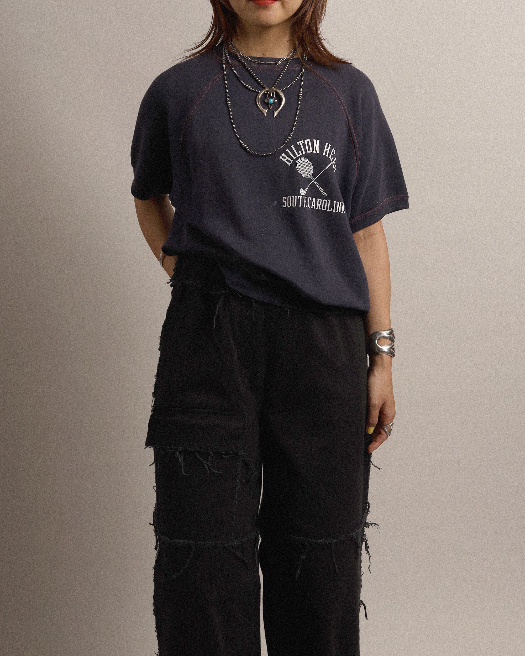 Era : c.1970 Label : Missing / Made in --- Materials : おそらくCotton, Poly Condition : 腹部にペンキ, 首元に色ヌケ Color : Faded Navy Size : 肩幅ラグラン / 身幅56cm / 着丈57cm / 裄丈43cm *採寸は平置きで採寸しております。多少の誤差は御了承下さい。 Model:163cm Care : 洗濯機クリーニングモード、手洗い