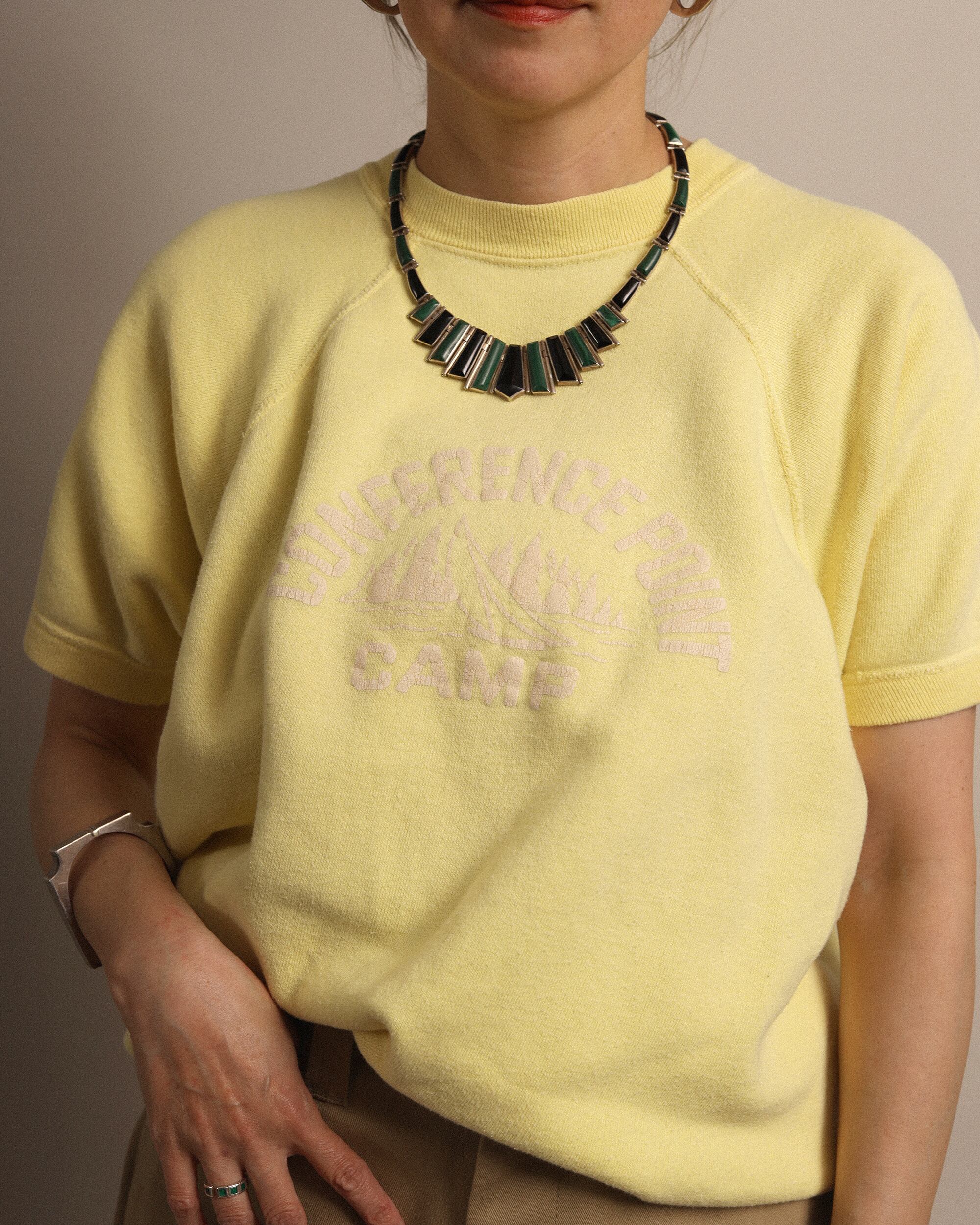 Era : c.1960 Label : Missing / Made in USA Materials :おそらく Cotton, Poly Condition : 目立ったキズやヨゴレなし Color : Faded Light Yellow Size : 肩幅ラグラン / 身幅56cm / 着丈56cm / 裄丈40cm *採寸は平置きで採寸しております。多少の誤差は御了承下さい。 Model:156cm Care : 洗濯機クリーニングモード、手洗い