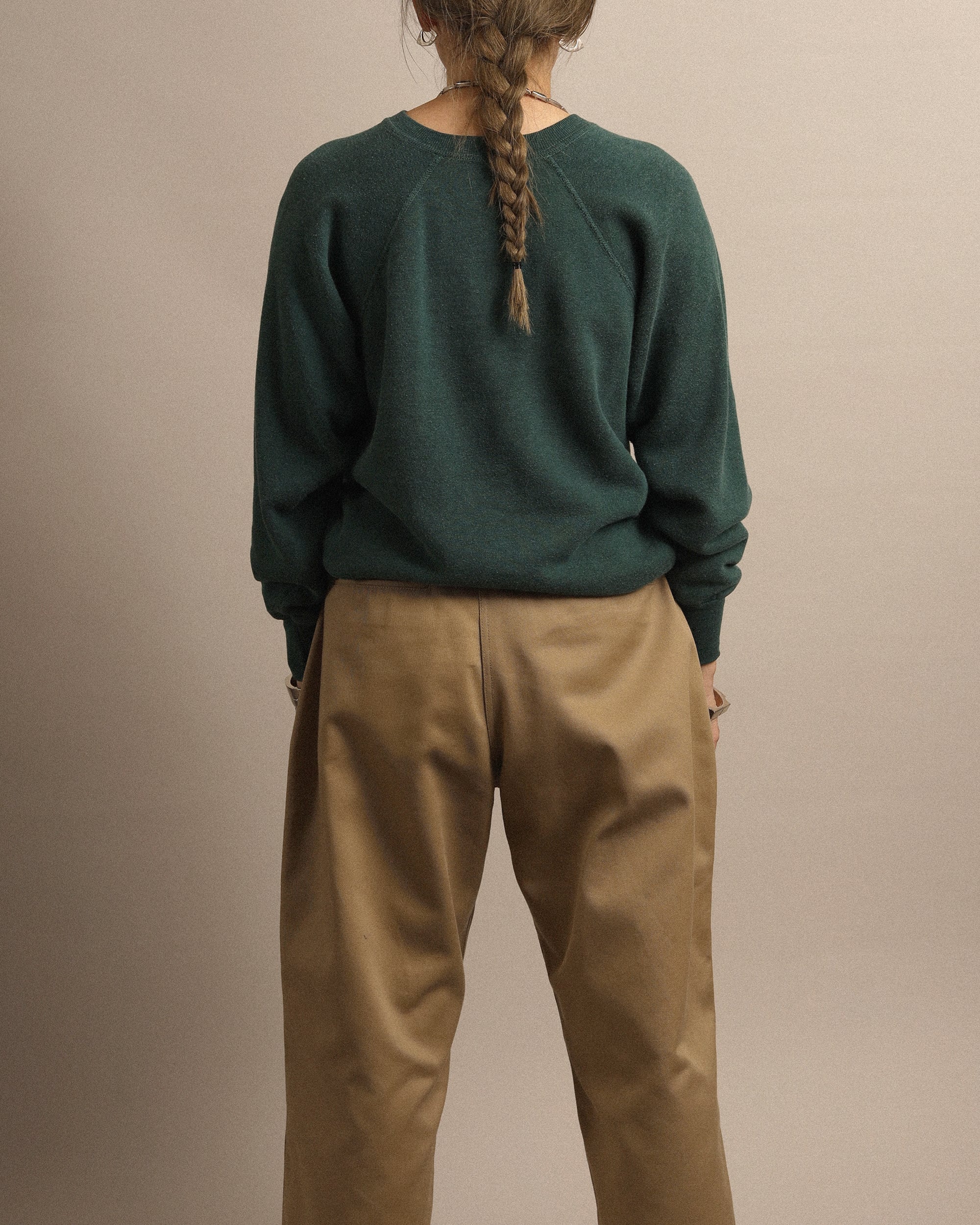 Era : c.1970 Label : Dawnerwear / Made in --- Materials : Cotton, Acrylic Condition : 左袖にインク Color : Faded Green Size : 肩幅ラグラン / 身幅49cm / 着丈56cm / 裄丈76cm *採寸は平置きで採寸しております。多少の誤差は御了承下さい。 Model:156cm Care : 洗濯機クリーニングモード、手洗い