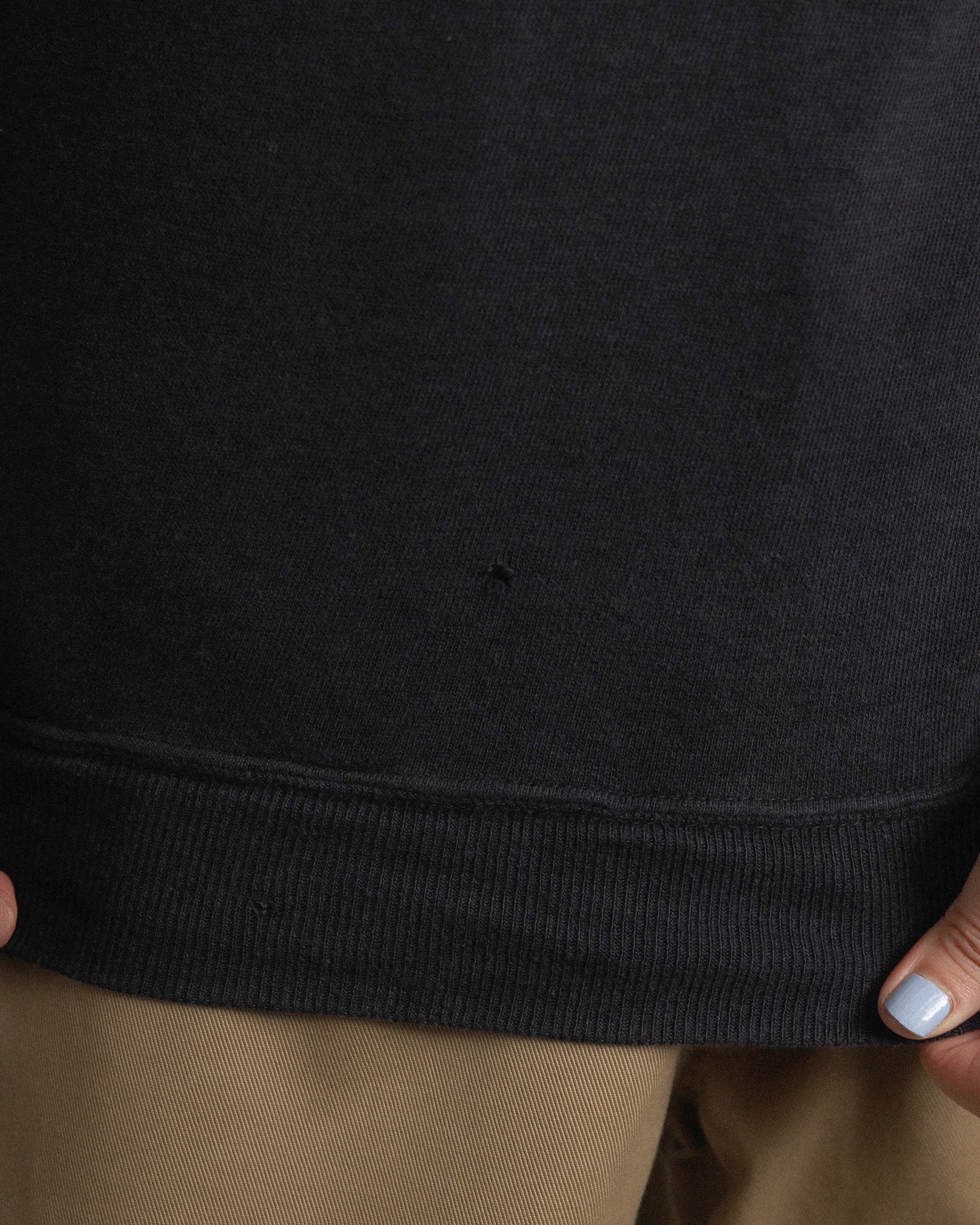 Era : c.1970 Label : Champion / Made in USA Materials : Cotton, Acrylic Condition : 所々にヤブレ, ペンキ, 色抜け Color : Faded Navy Size : 肩幅ラグラン / 身幅46cm / 着丈50cm / 裄丈72cm *採寸は平置きで採寸しております。多少の誤差は御了承下さい。 Model:156cm Care : 洗濯機クリーニングモード、手洗い