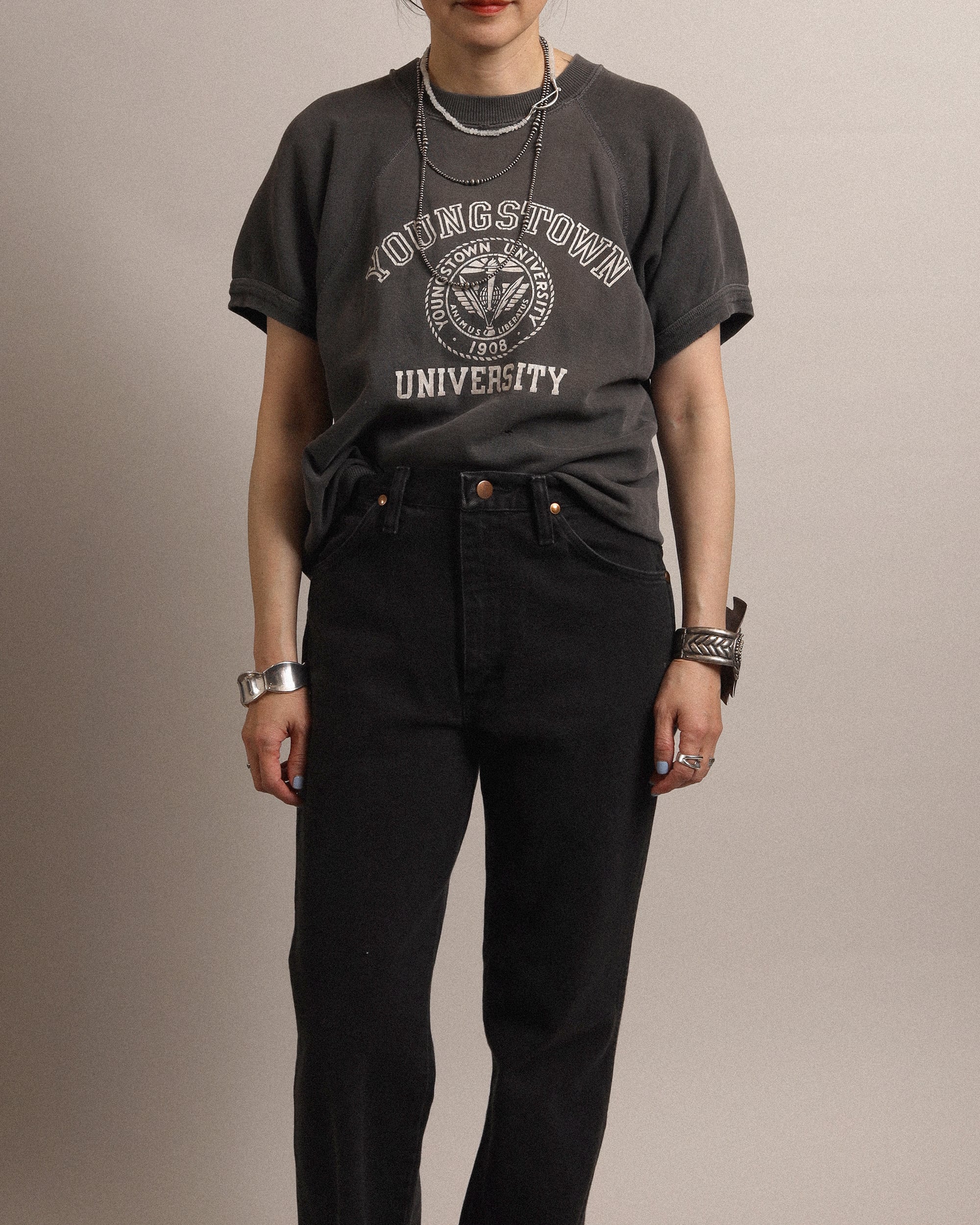 Era : c.1960 Label : Unmarked / Made in --- Materials : おそらくCotton Condition : 全体にキズ, スレ, ヤブレ Color : Faded Black Size : 肩幅ラグラン / 身幅50cm / 着丈55cm / 裄丈39cm *採寸は平置きで採寸しております。多少の誤差は御了承下さい。 Model:156cm Care : 洗濯機クリーニングモード、手洗い