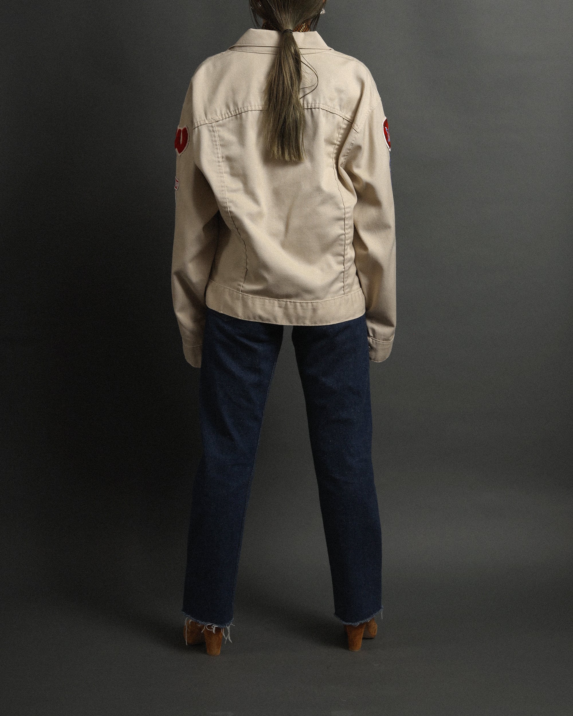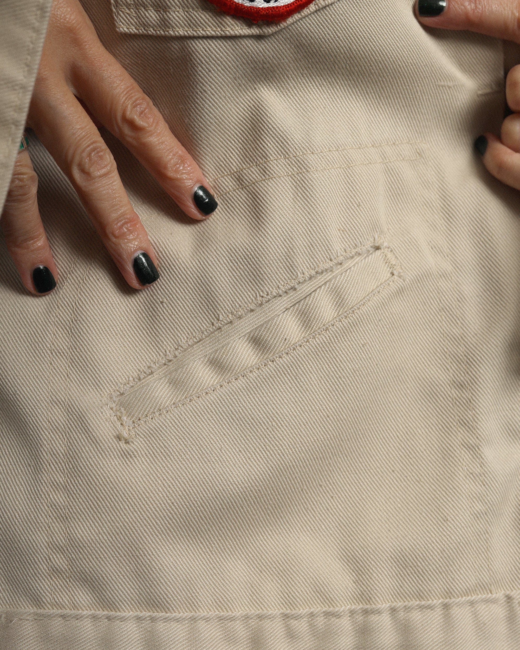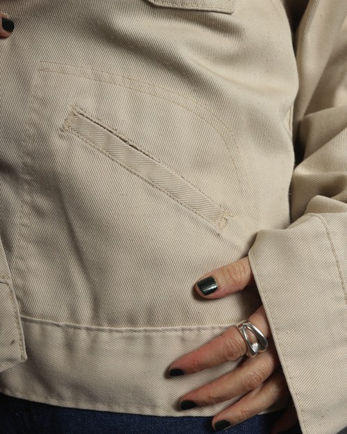 Era : c.1970 Label : Ranchcraft / Made in --- Materials : Poly, Cotton Condition : 襟, 肩, ポケット口にスレ, 目立たないヨゴレ Color : Light Beige Size : 肩幅51cm / 身幅59cm / 着丈60cm / 袖丈58cm *採寸は平置きで採寸しております。多少の誤差は御了承下さい。 Model:156cm Care : 洗濯機クリーニングモード、手洗い