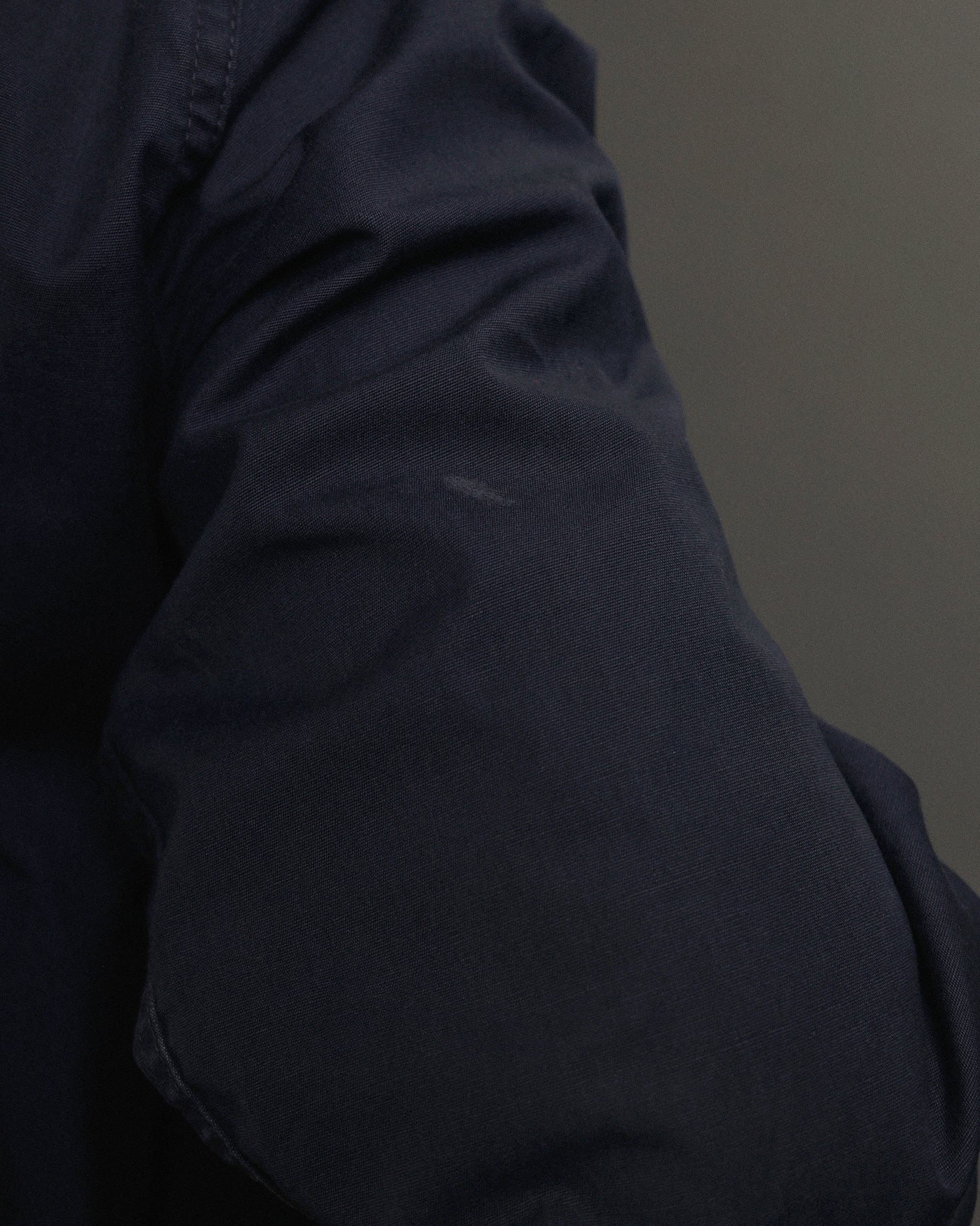 Era : c.1960 Label : Champion / Made in USA Materials : Cotton Condition : 首元, 両袖に小さいキズ, 左脇にパンク Color : Faded Navy Size : 肩幅45cm / 身幅51cm / 着丈54cm / 袖丈59cm *採寸は平置きで採寸しております。多少の誤差は御了承下さい。 Model:163cm Care : 洗濯機クリーニングモード、手洗い