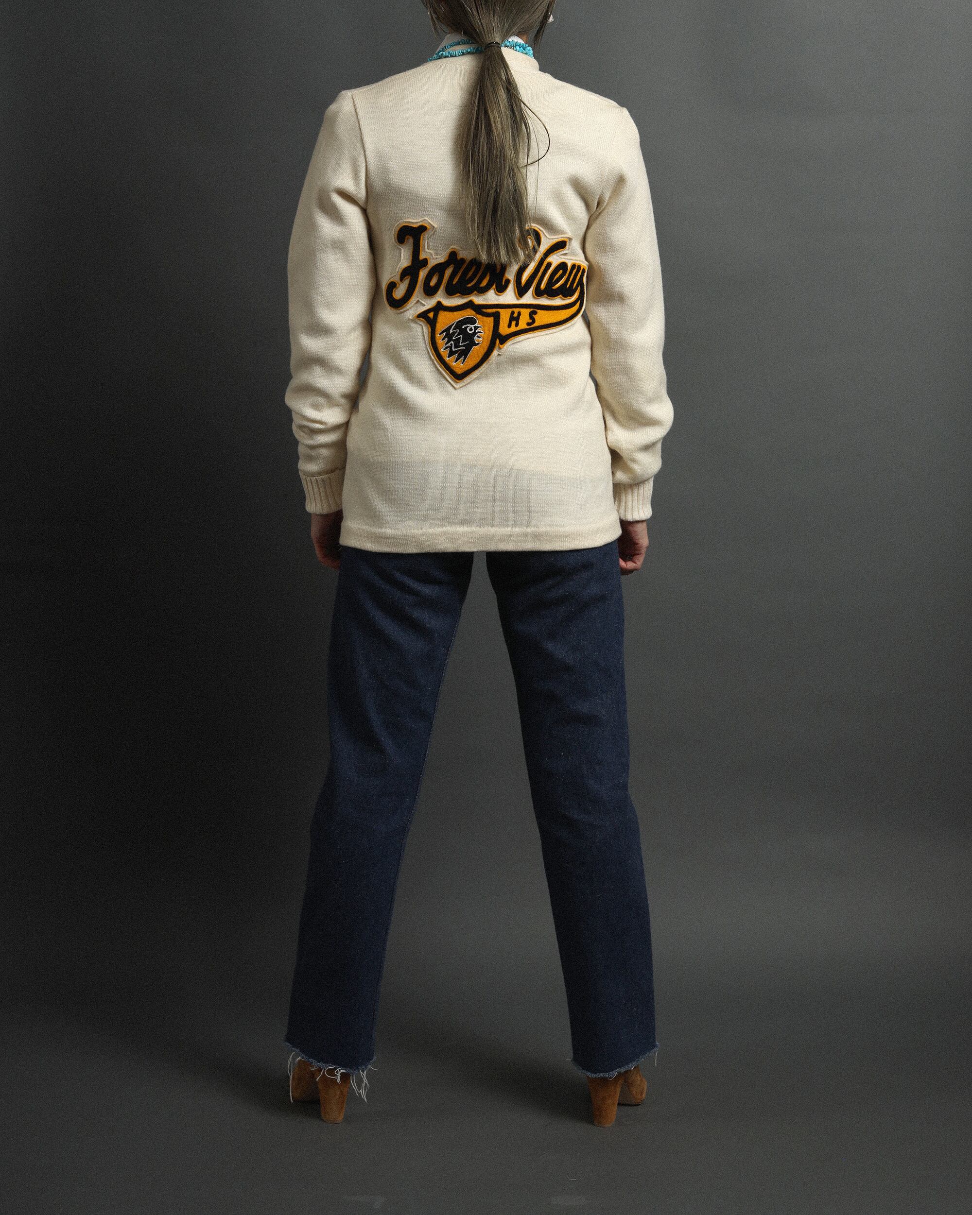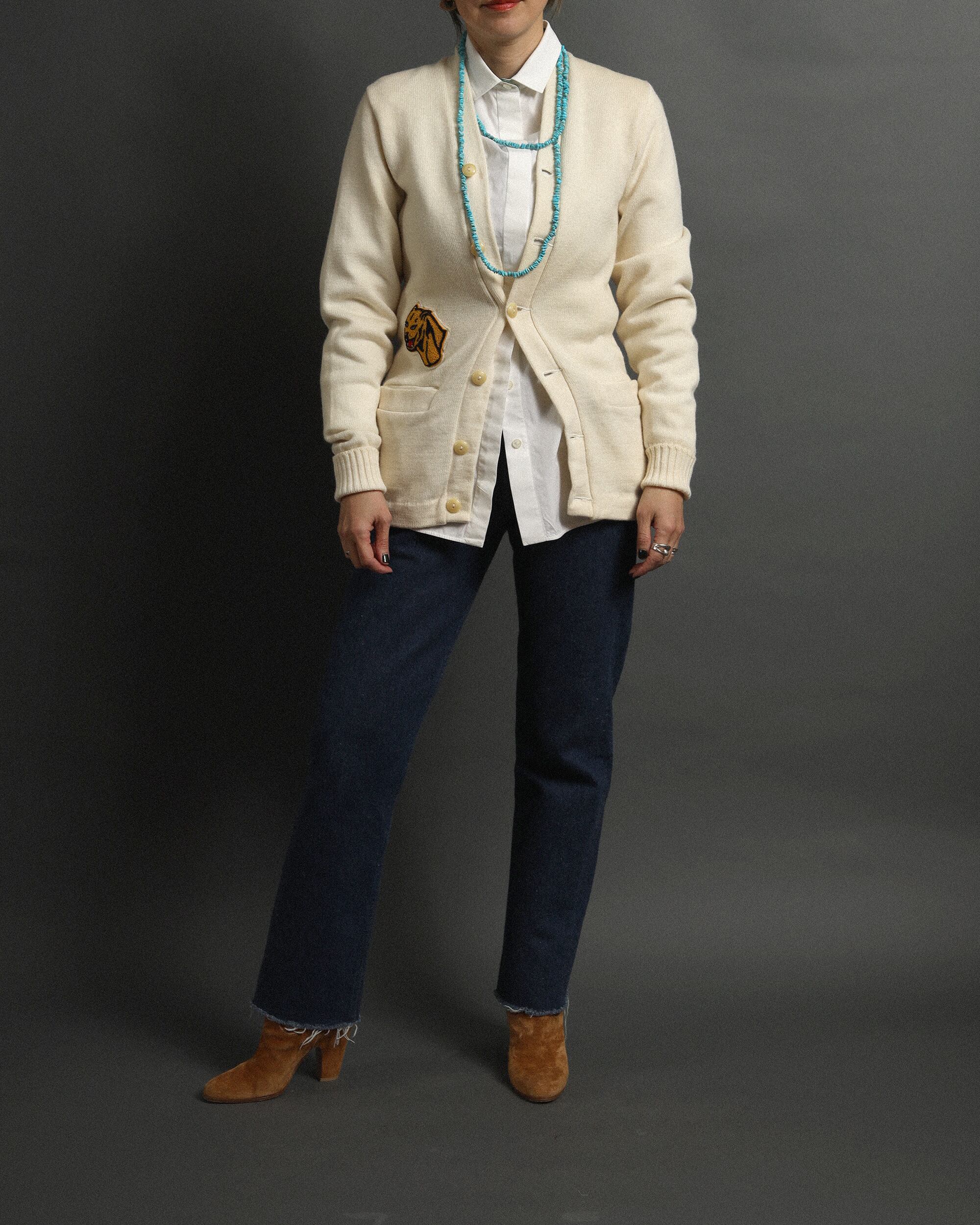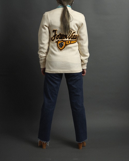 Era : c.1950 Label : A.L.Whiting.Co / Made in USA Materials : Wool Condition : 目立ったキズやシミなし Color : Off White Size : 肩幅35cm / 身幅37cm / 着丈64cm / 袖丈69cm *採寸は平置きで採寸しております。多少の誤差は御了承下さい。 Model:156cm Care : クリーニング