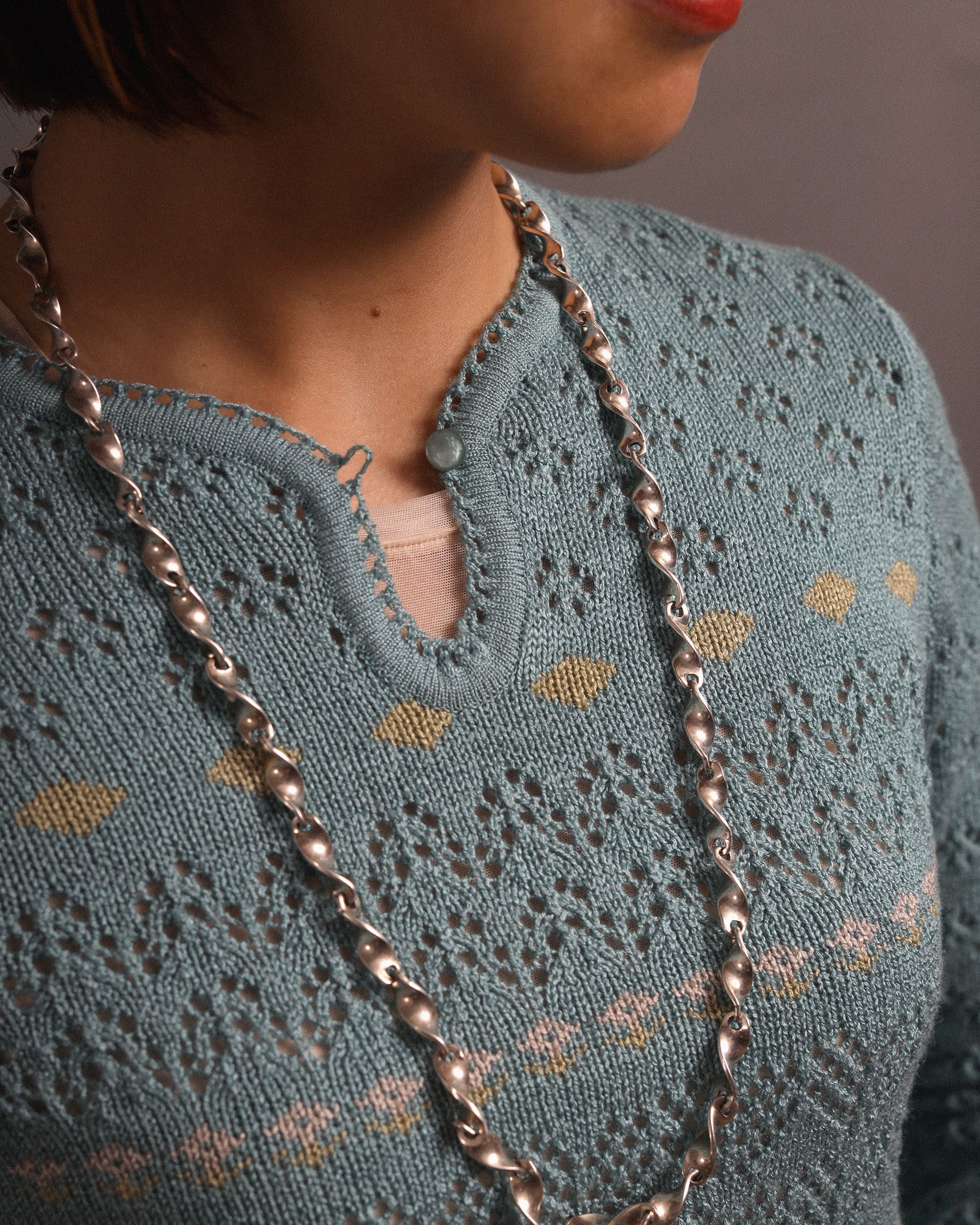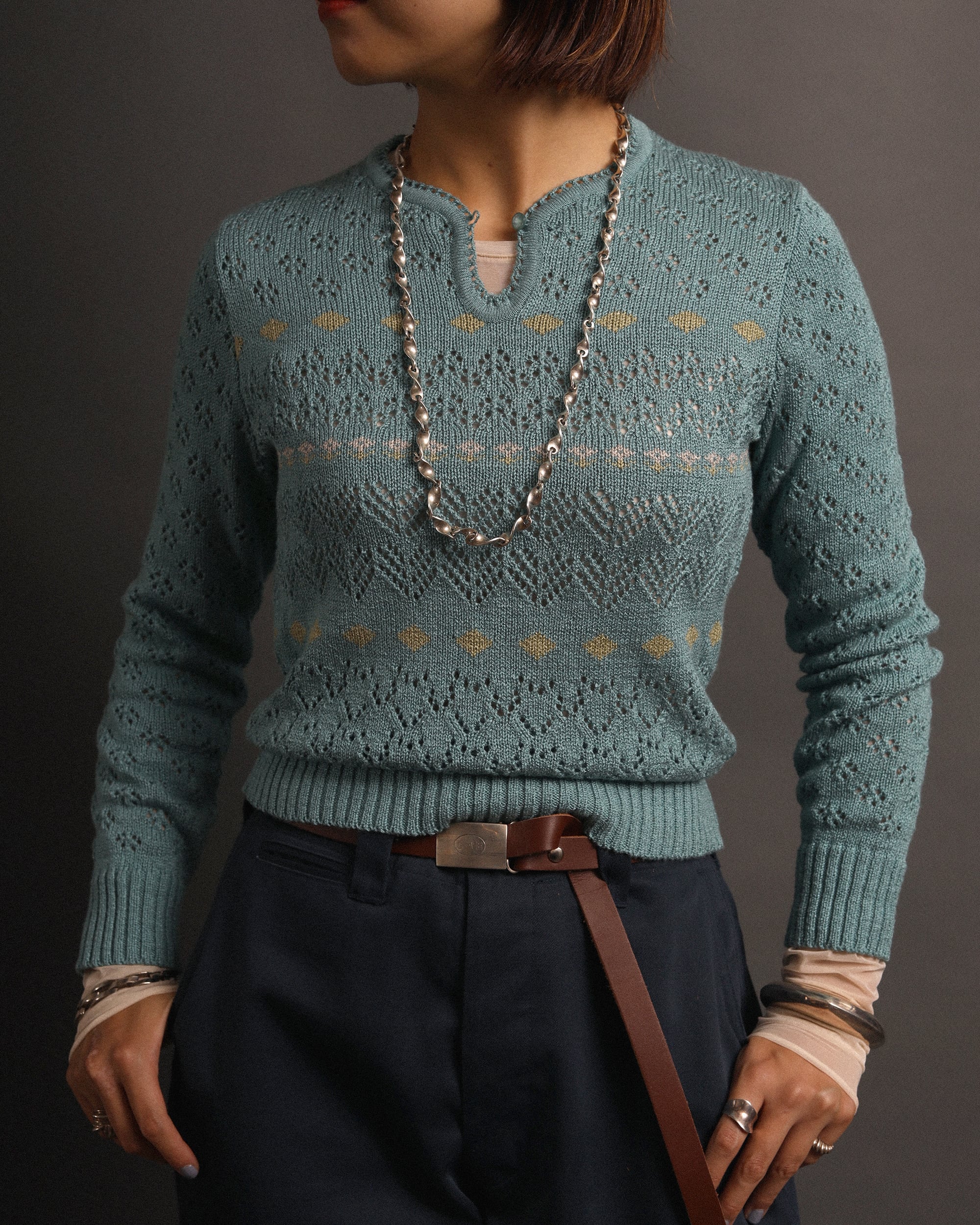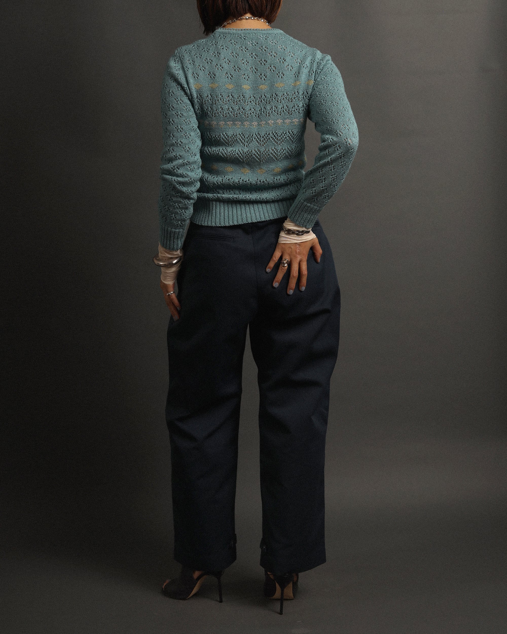 Era : c.1970 Label : La Petite M'amselle / Made in --- Materials : Wool, Other Condition : 目立ったキズやシミなし Color : Light Blue Size : 肩幅36cm / 身幅40cm / 着丈55cm / 袖丈58cm *採寸は平置きで採寸しております。多少の誤差は御了承下さい。 Model:163cm Care : クリーニング