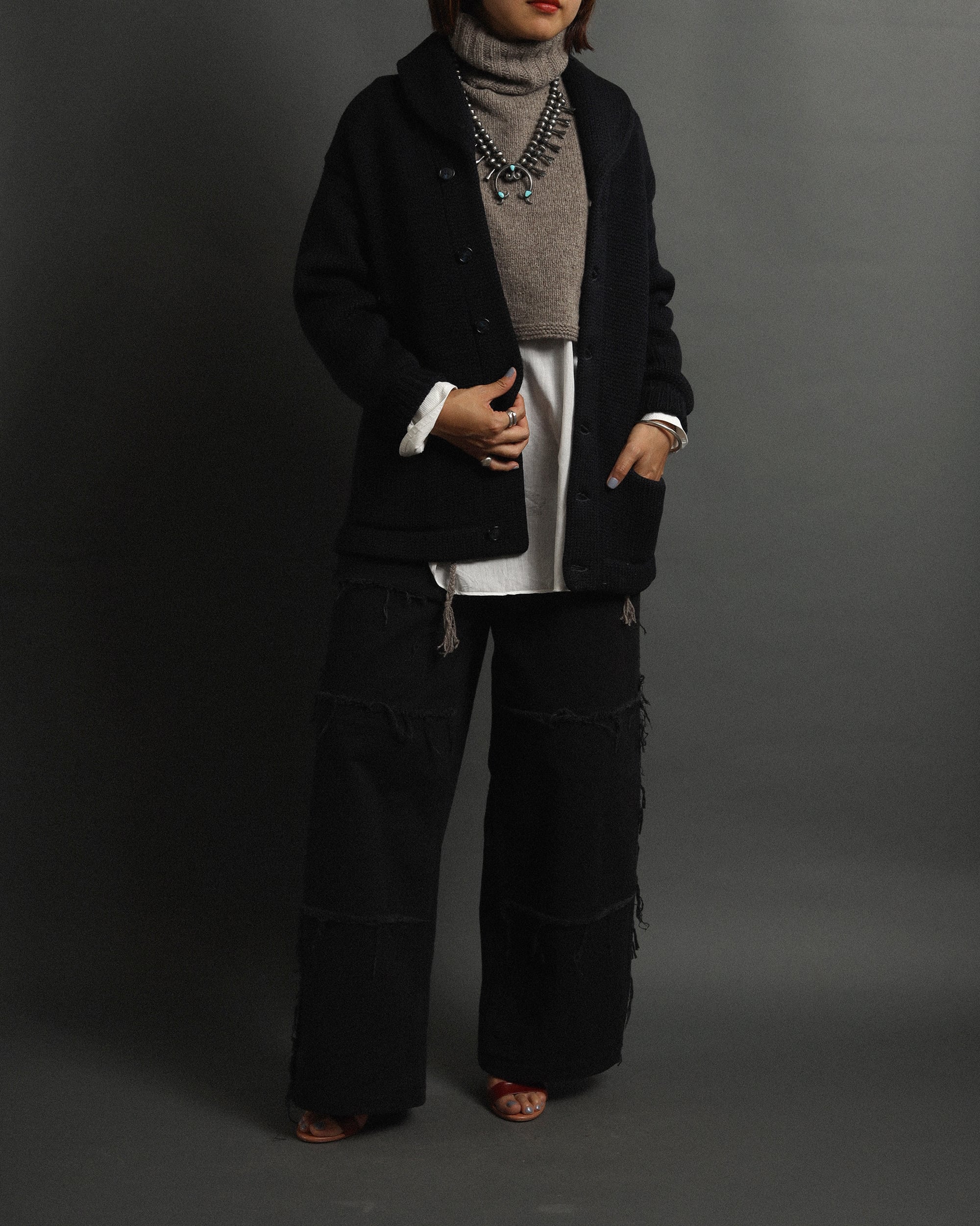 Era : c.1940 Label : Unknown / Made in --- Materials : Wool Condition : タグダメージ Color : Dark Navy Size : 肩幅50cm / 身幅50cm / 着丈65cm / 袖丈49cm *採寸は平置きで採寸しております。多少の誤差は御了承下さい。 Model:163cm Care : クリーニング