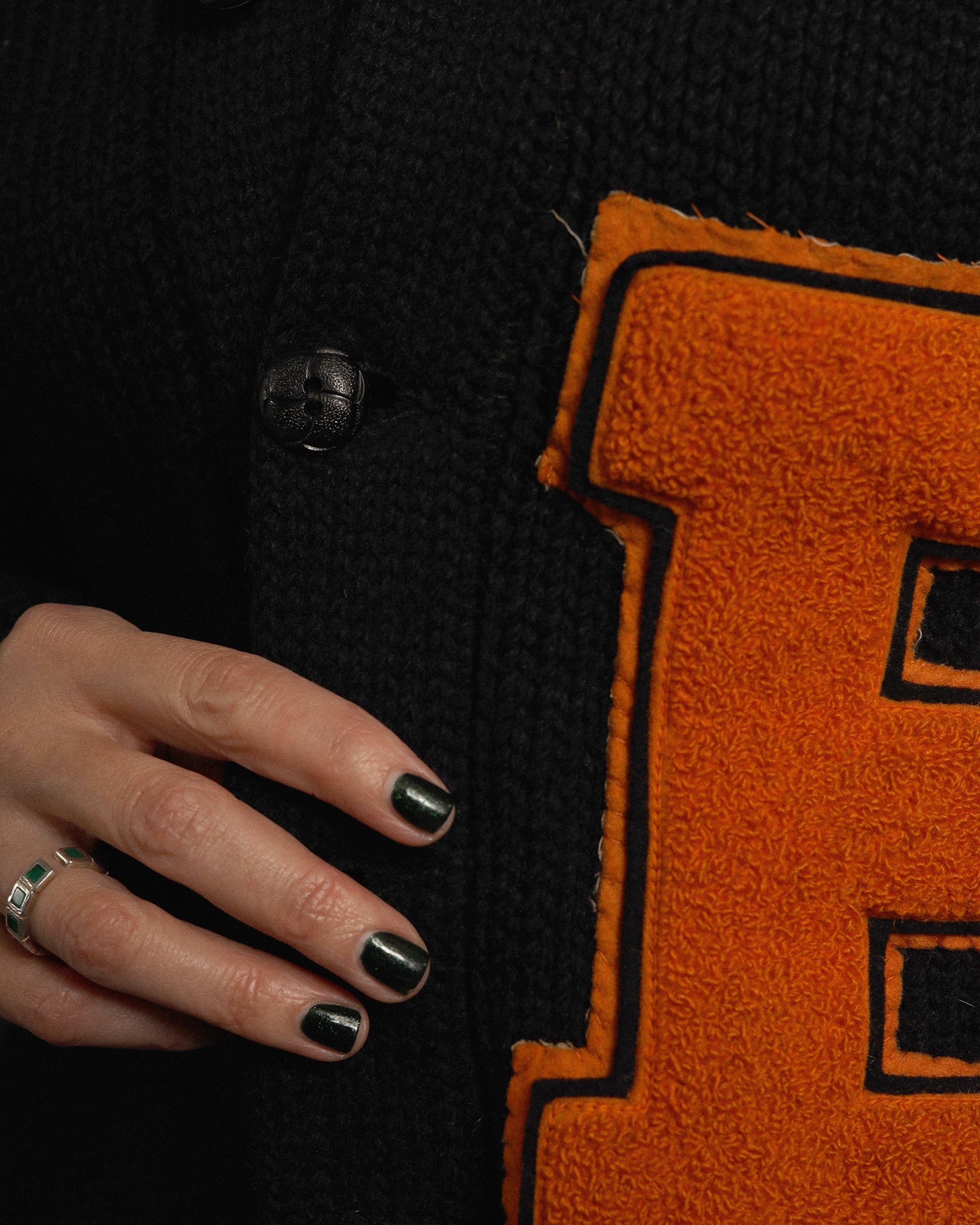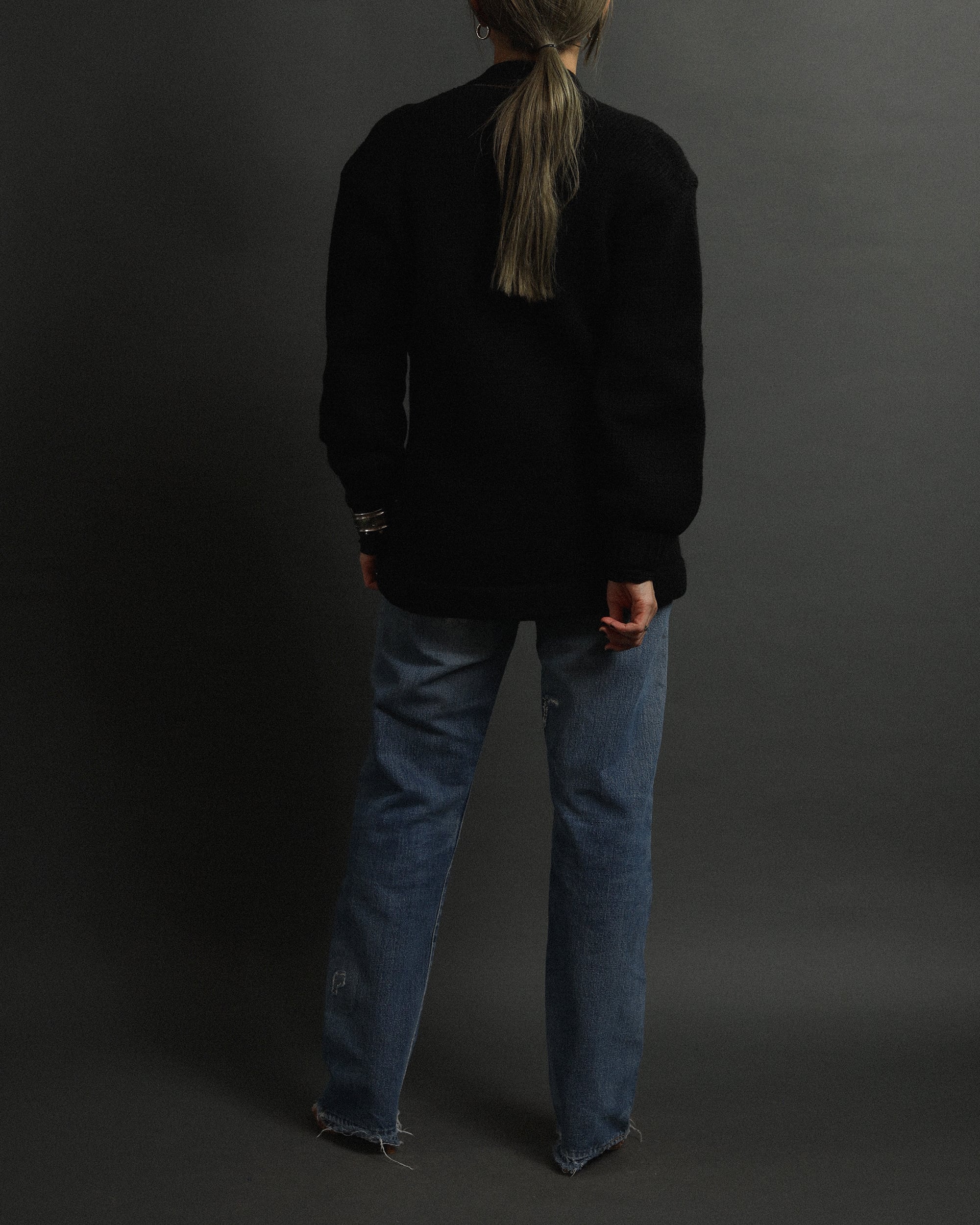 Era : c.1940 Label : Fine Sportswear / Made in --- Materials : Wool Condition : 目立ったキズやシミなし Color : Black Size : 肩幅48cm / 身幅47cm / 着丈67cm / 袖丈56cm *採寸は平置きで採寸しております。多少の誤差は御了承下さい。 Model:156cm Care : クリーニング