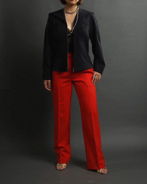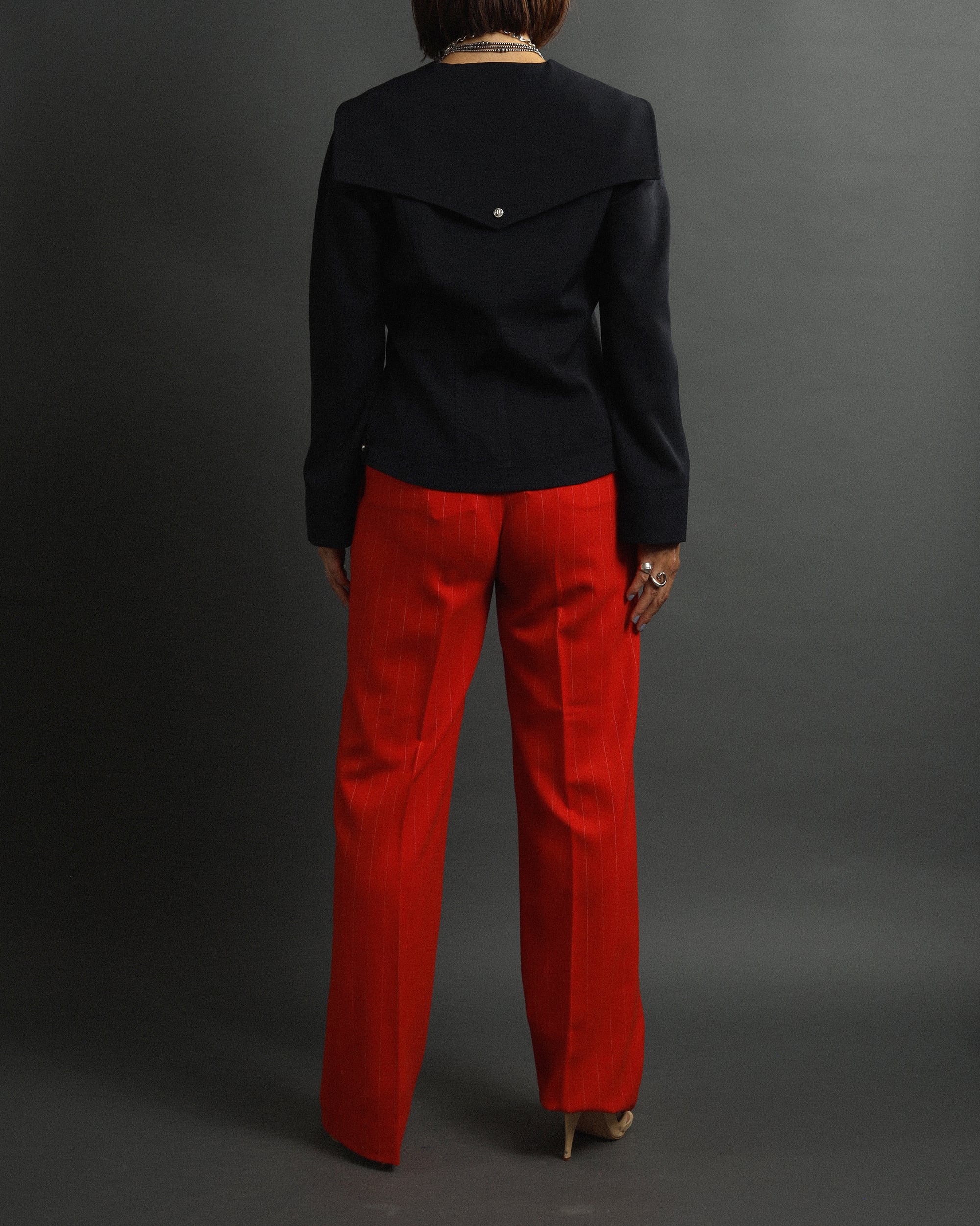 Era : c.1990 Label : Mugler Trademark / Made in --- Materials : Poly, Wool, Spandex Condition : 目立ったキズやシミなし Color : Navy Size : 肩幅40cm / 身幅48cm / 着丈58cm / 袖丈57cm *採寸は平置きで採寸しております。多少の誤差は御了承下さい。 Model:163cm Care : ドライクリーニング