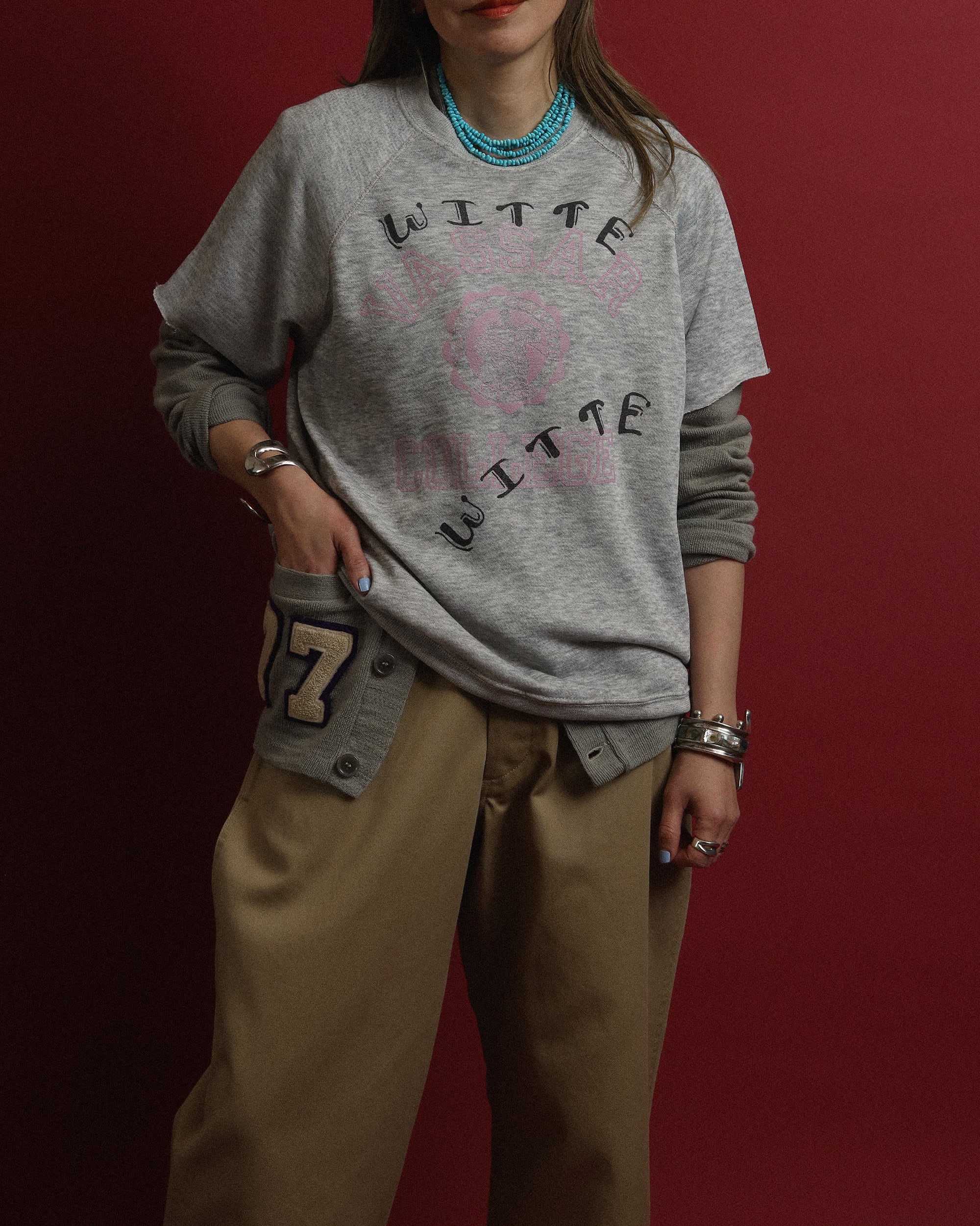 1950年代ヴィンテージTシャツに残されていた手書きの “WITTE” をモチーフに、オリジナルプリントとしてヴィンテージスウェットに落とし込みました。