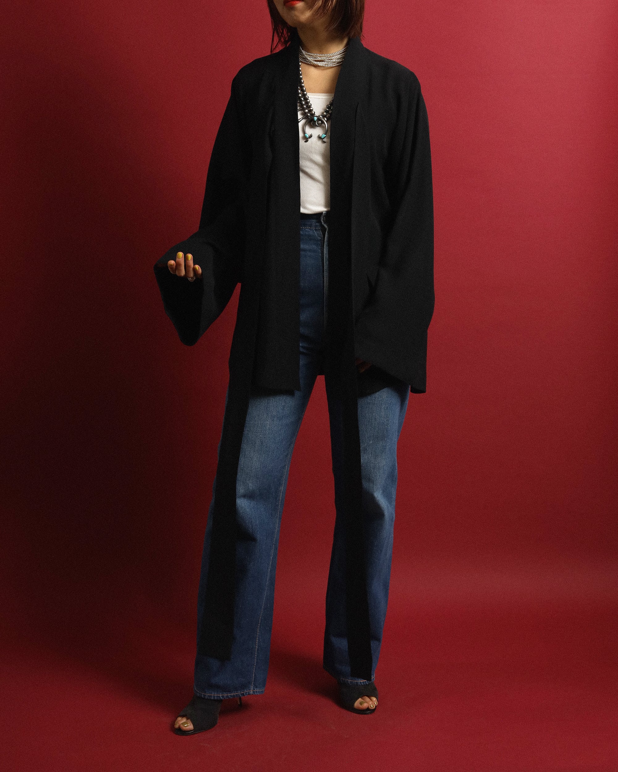 Size : 身幅44cm / 肩幅38cm / 着丈76cm / 袖丈65cm