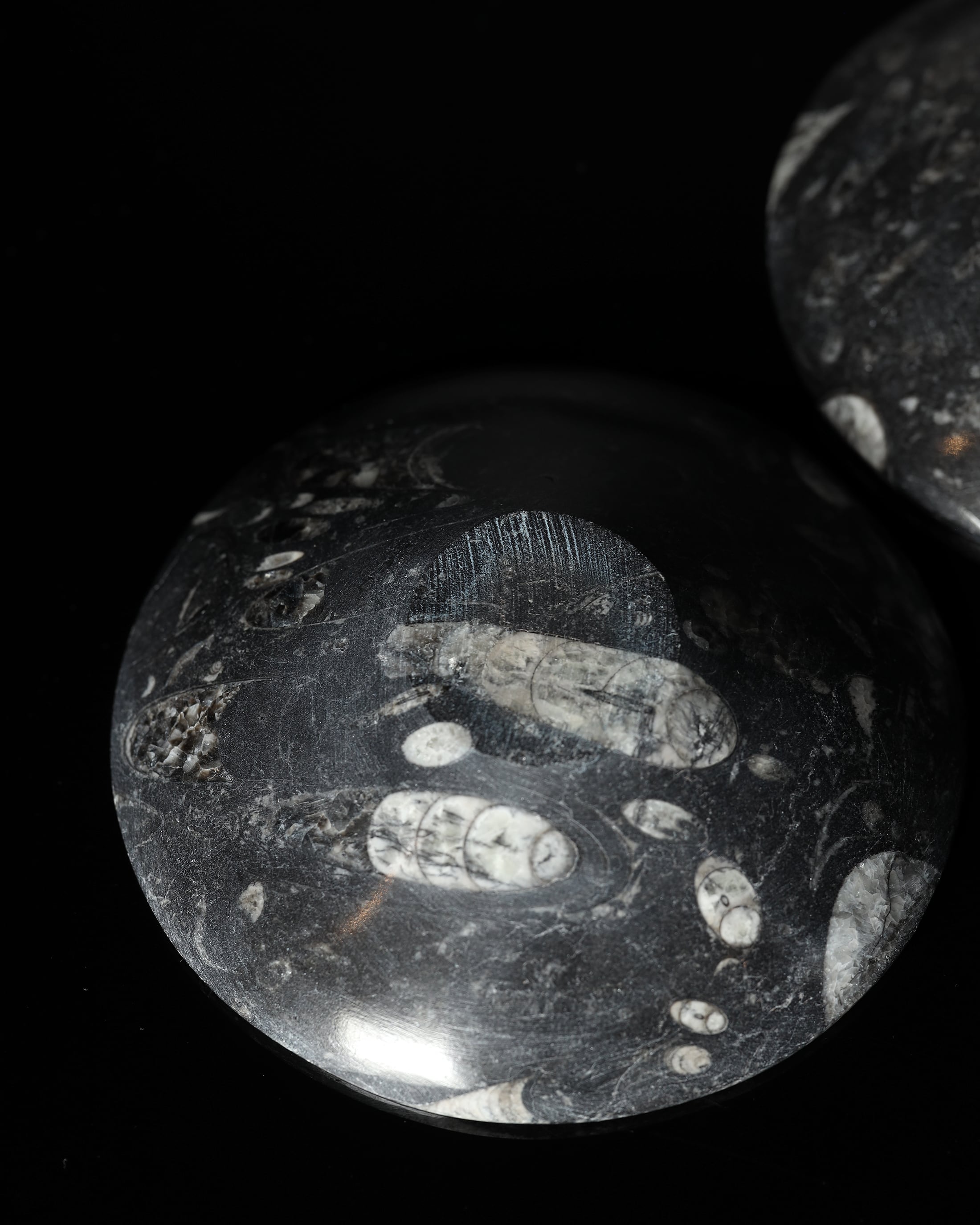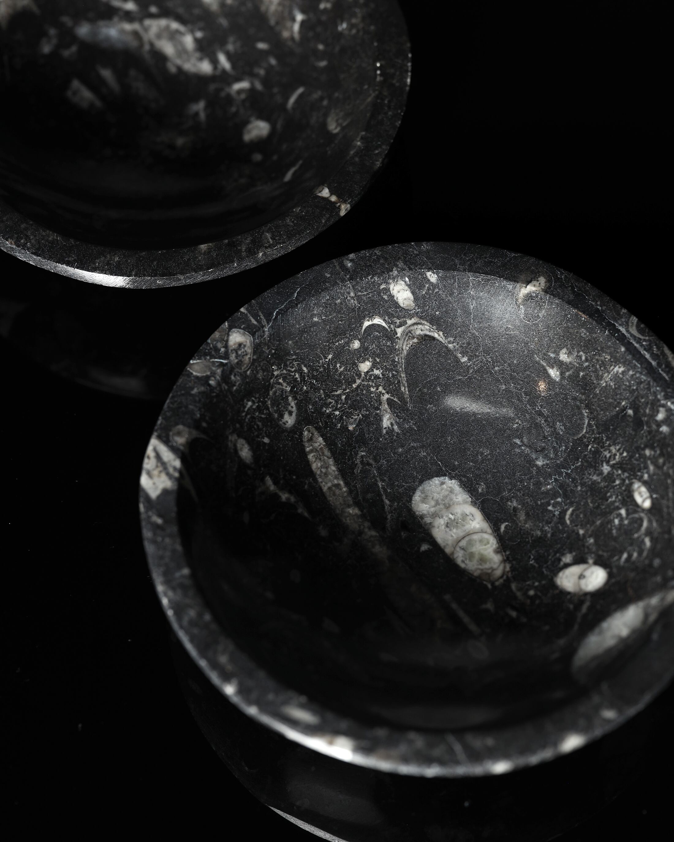 黒い大理石内に浮かび上がる、まっすぐに伸びるフォルムは、太古の海を漂っていた記憶そのもの。