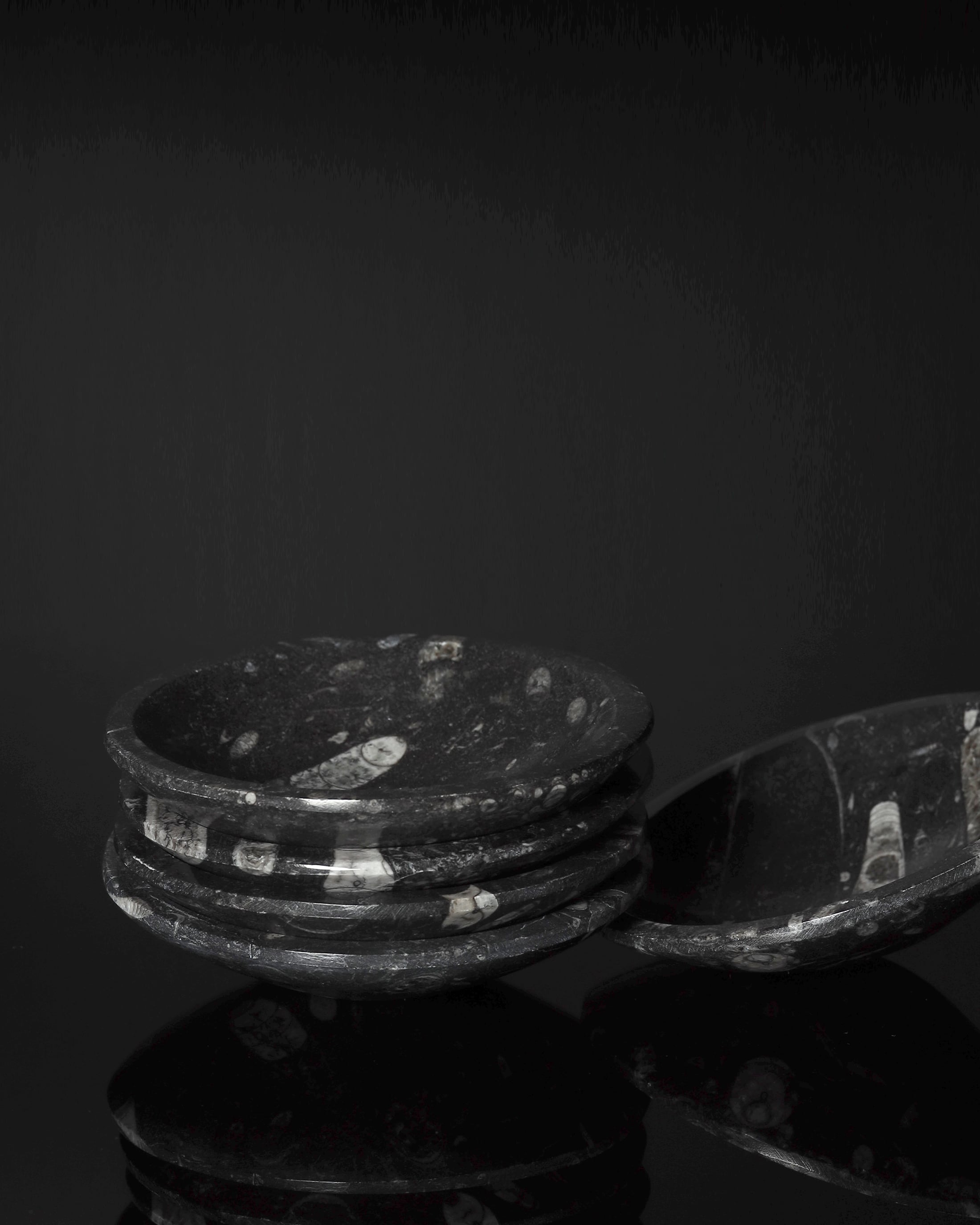 その直線的な殻の痕跡を封じ込めた、大理石のボウルです。