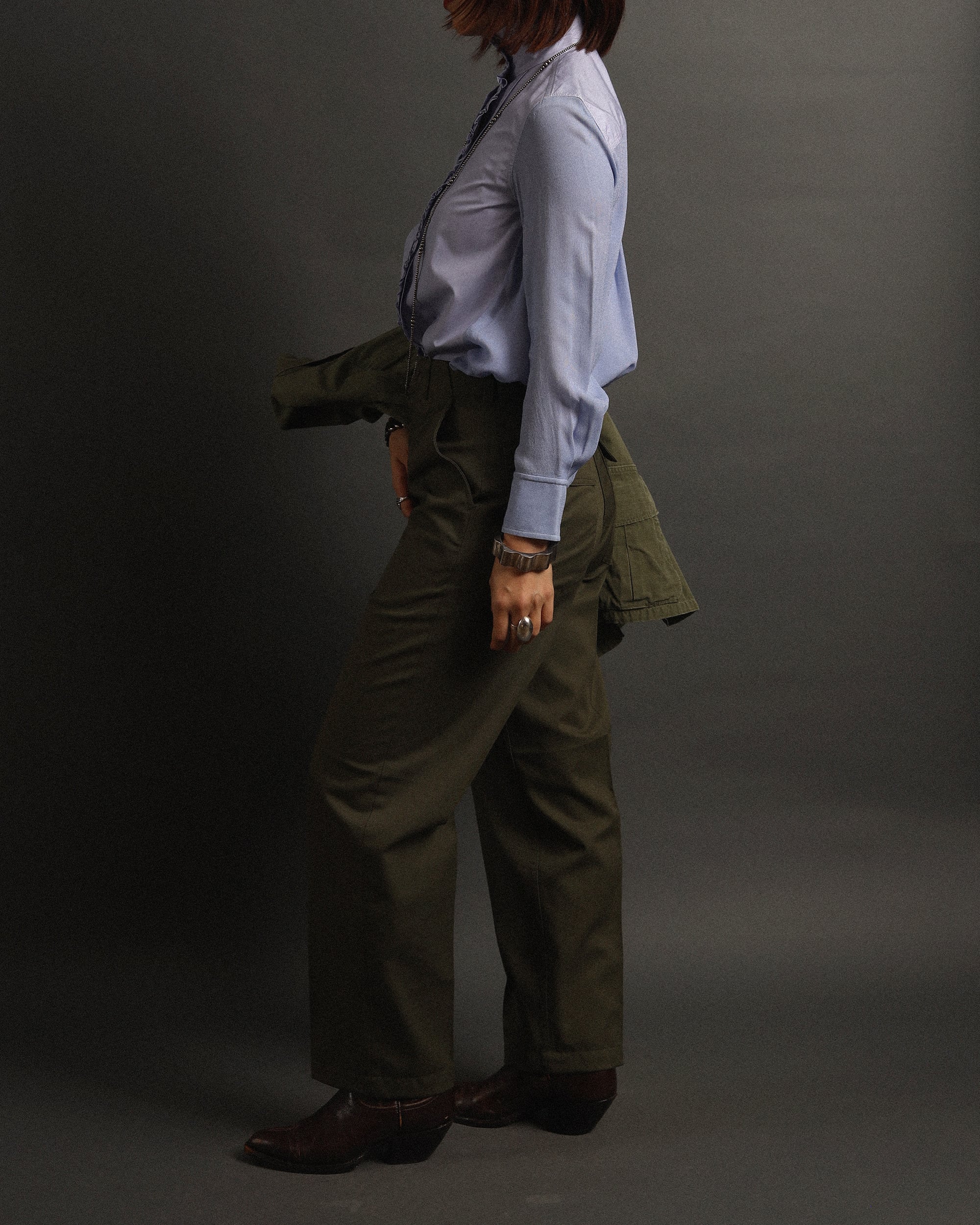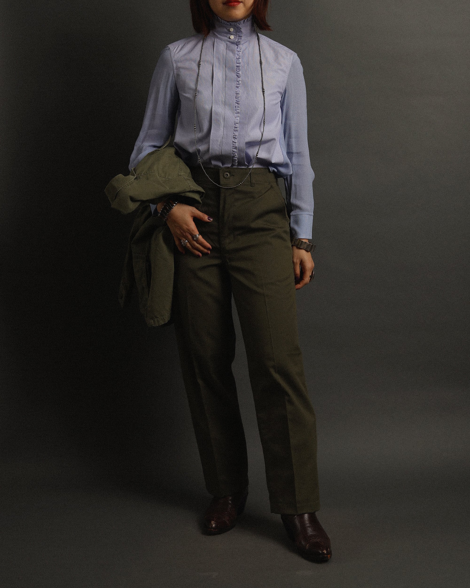 Size 34 : 身幅45cm / 肩幅41cm / 着丈77cm / 袖丈56cm