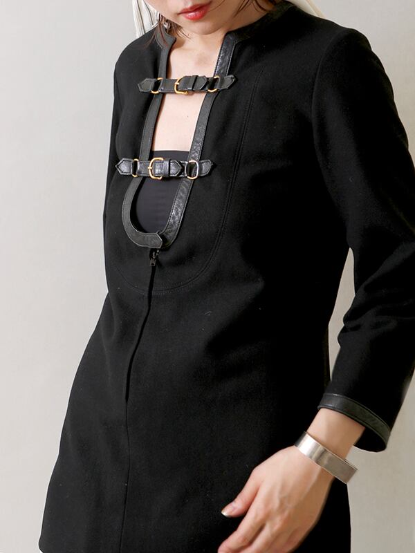 レザーのベルトデザイン、サイドスリット、ジップ、全てが完璧な一枚。