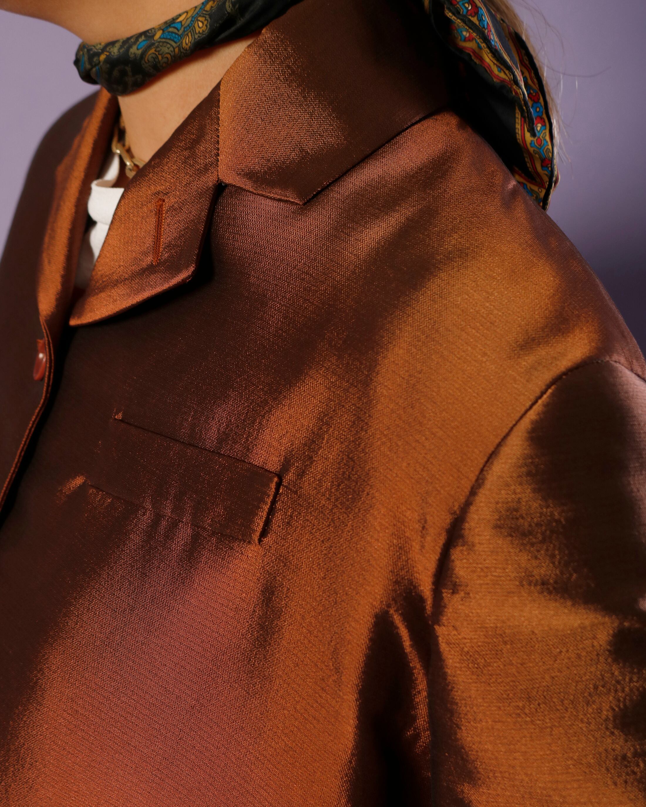 Romeo Gigliらしいフォルムと光沢のある素材感が特徴のジャケット。薄すぎず、若干の厚みがあります。
