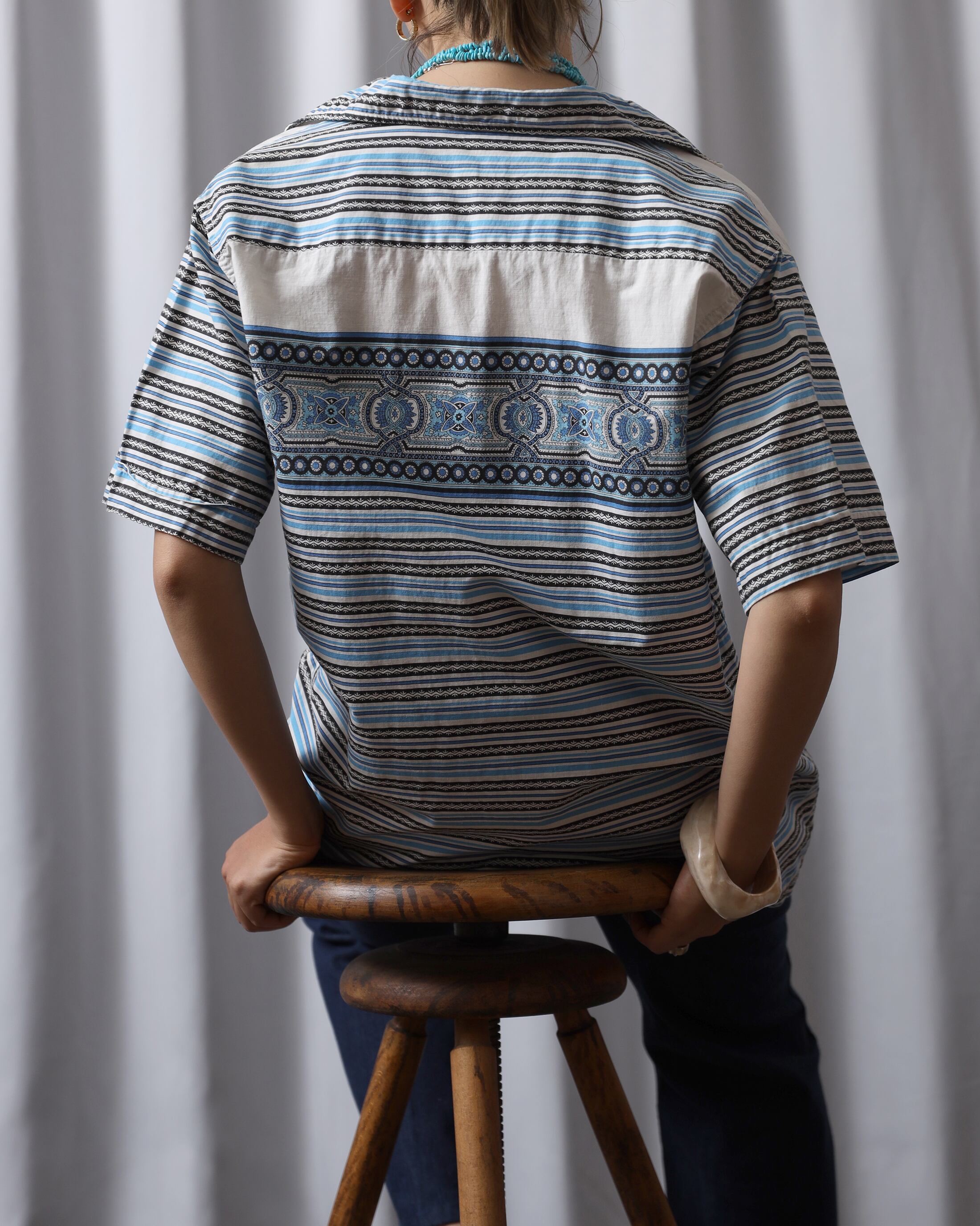 Era : c.1950 Label : Penny's / Made in USA Materials : Cotton Condition : 目立った傷やシミなし Color : Light Blue, White, Other Size : 肩幅44cm / 身幅57cm / 着丈71cm / 袖丈24cm *採寸は平置きで採寸しております。多少の誤差は御了承下さい。 Model : 170cm Care : ドライクリーニング
