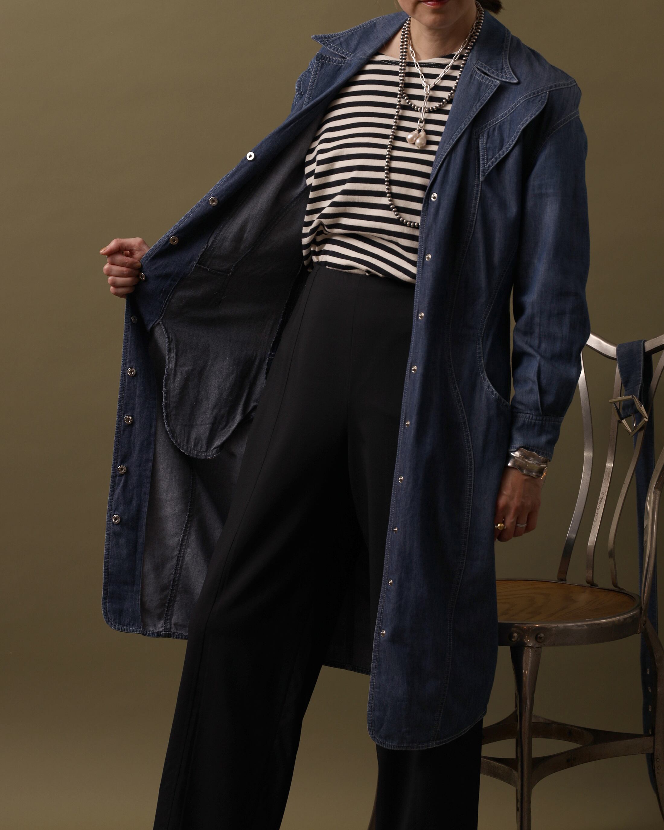 Size : 肩幅44cm / 身幅45cm / ウエスト41cm / 着丈99cm / 袖丈49cm