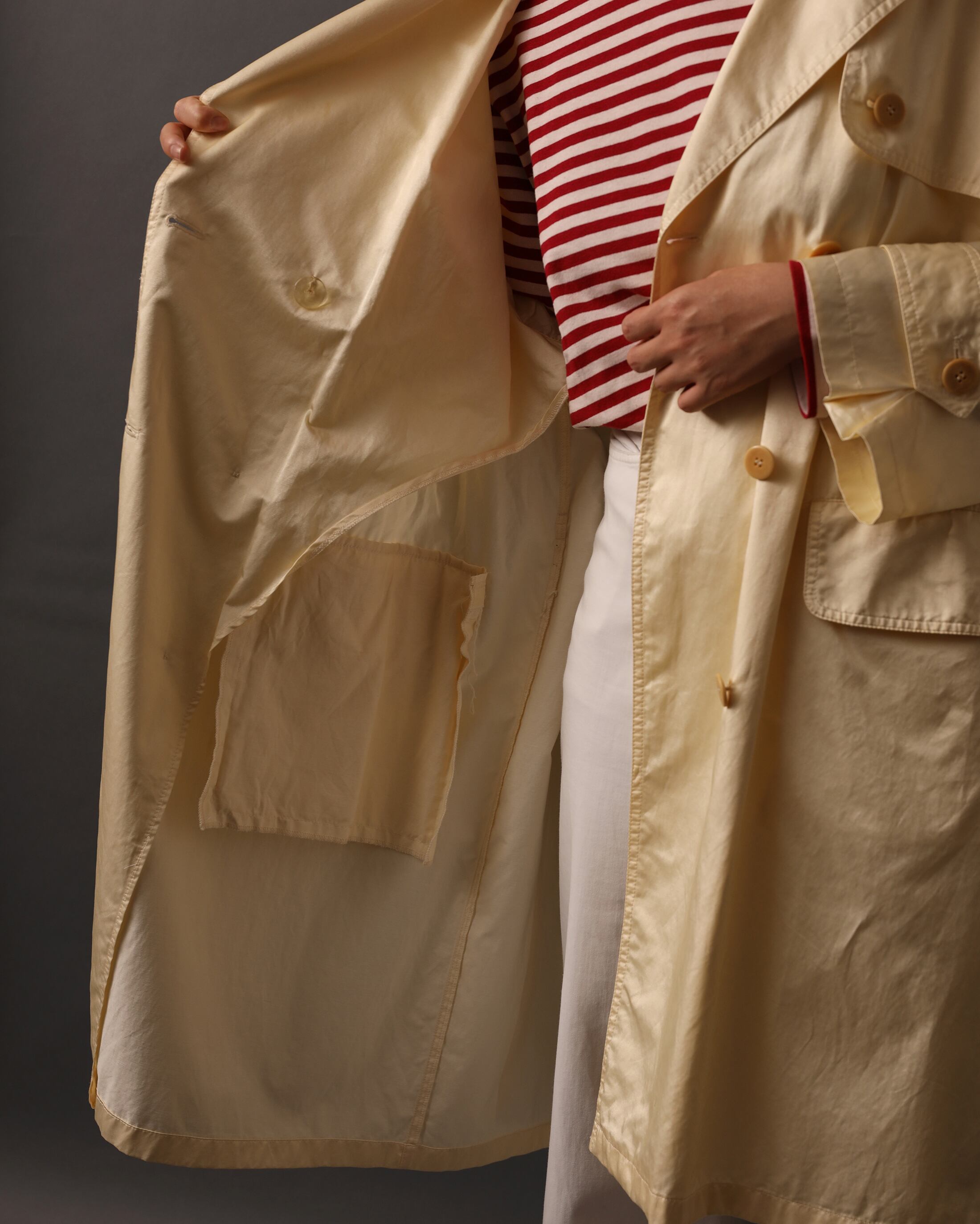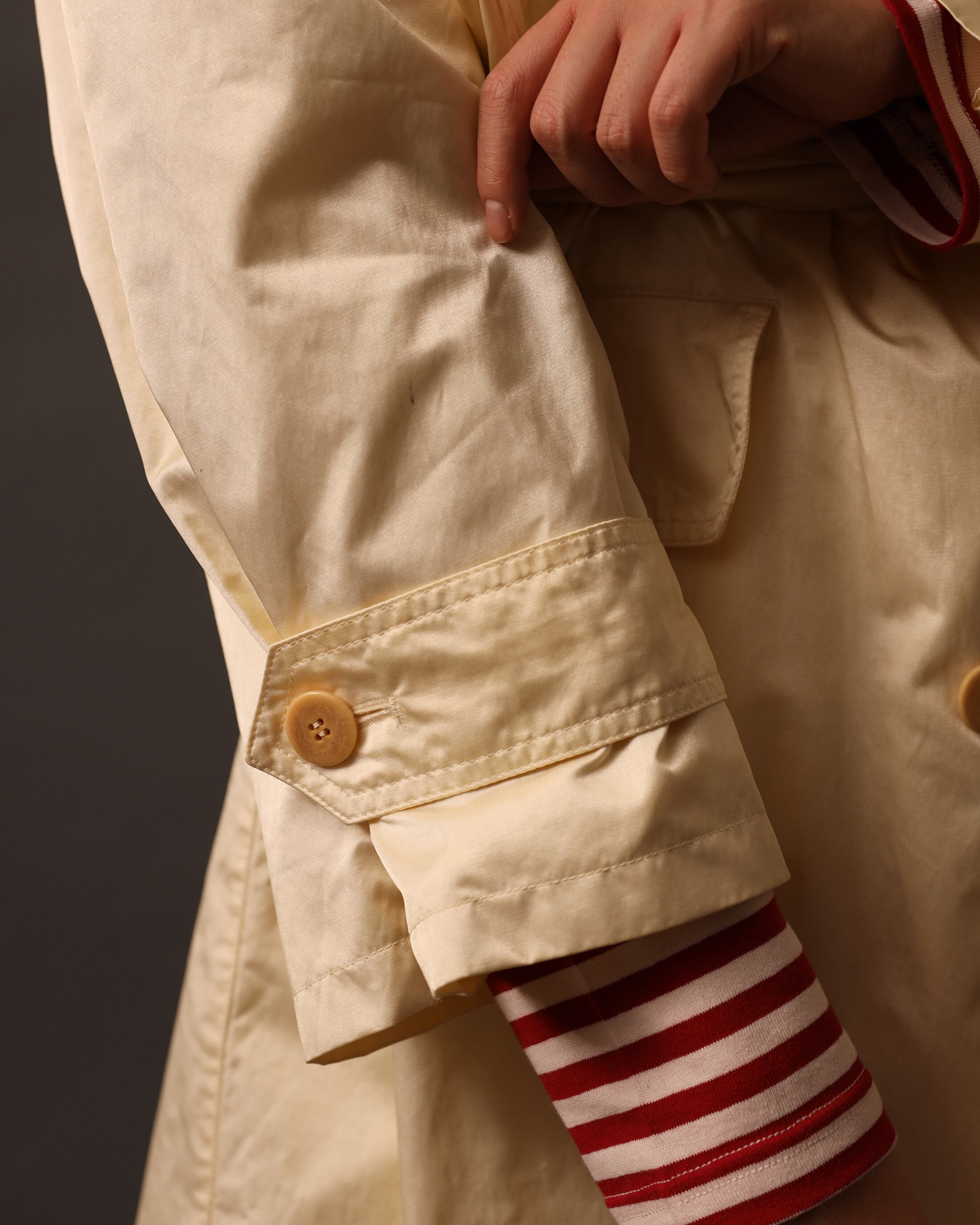 Era : c.1980 Label : Valentino / Made In Italy Materials : Missing Condition : 数ヶ所シミ Color : Ivory Size : 肩幅60cm / 身幅67cm / 着丈100cm / 袖丈46cm *採寸は平置きで採寸しております。多少の誤差は御了承下さい。 Care : ドライクリーニング Model : 170cm