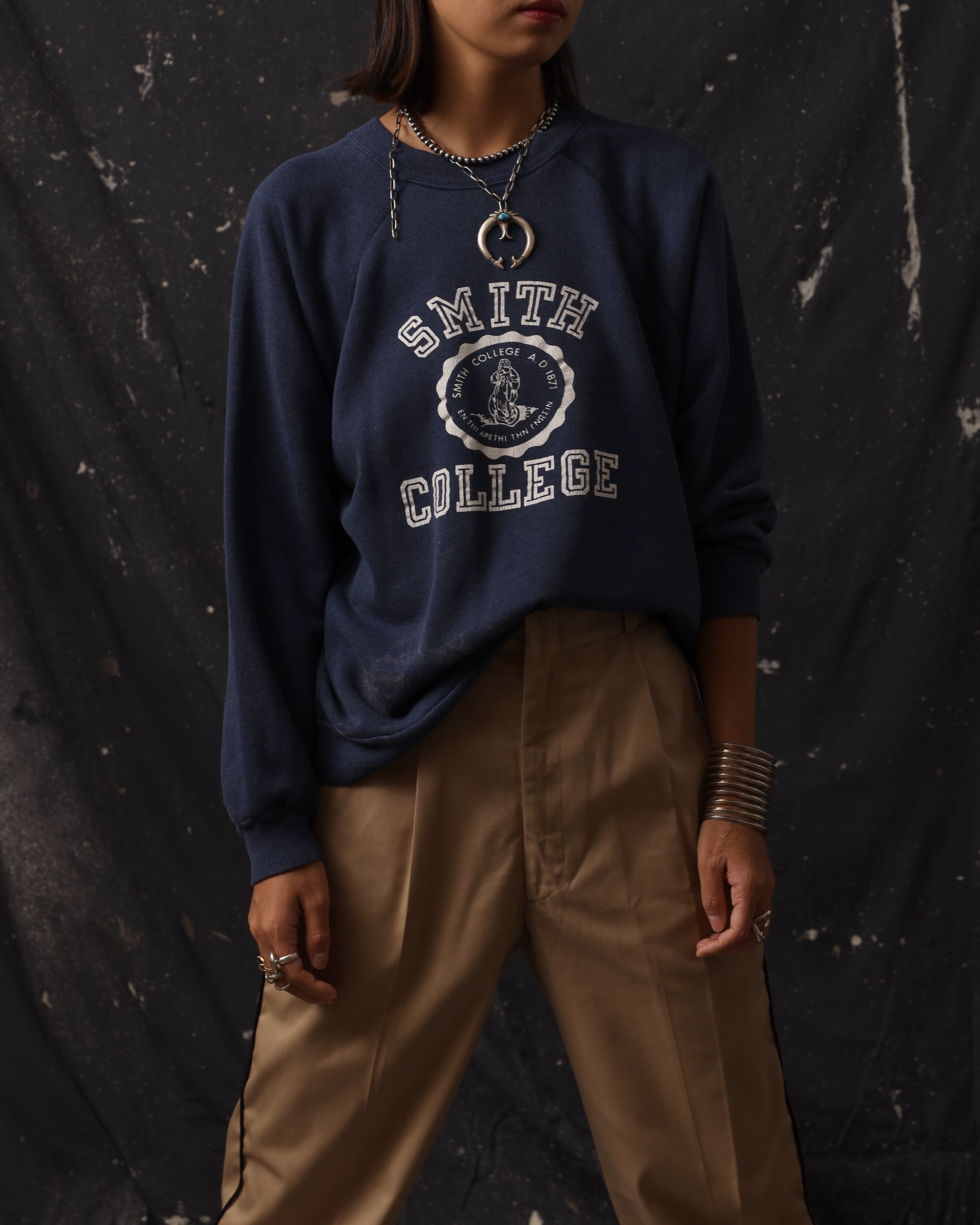 Era : c.1980 Label : Missing / Made in --- Materials : おそらくCotton,Other Condition : 前身頃,右袖,裾に色抜け、裾ステッチ抜け Color : Faded Navy Size : 肩幅ラグラン / 身幅60cm / 着丈55cm / 裄丈80cm *採寸は平置きで採寸しております。多少の誤差は御了承下さい。 Model:170cm Care : 手洗い