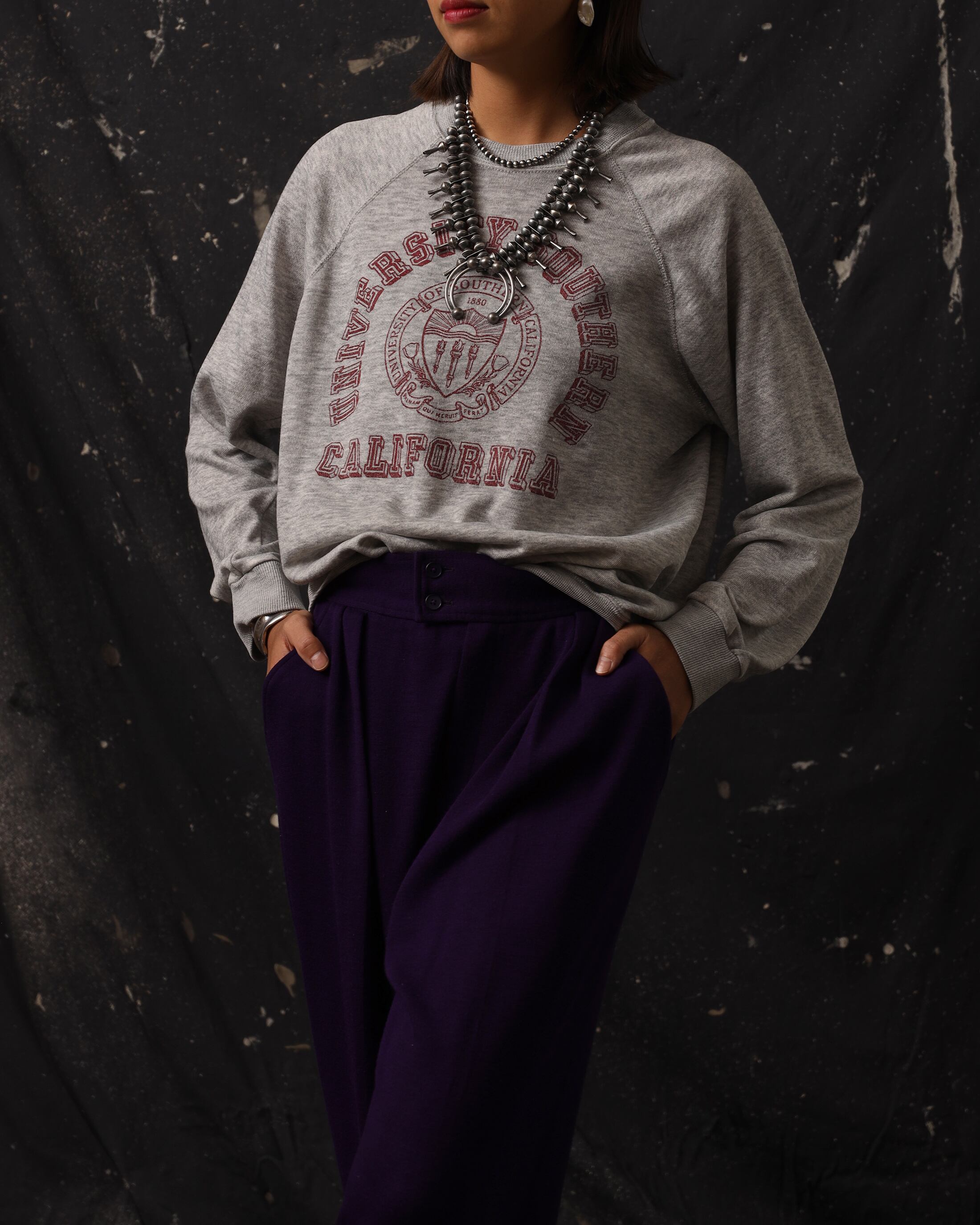 Era : c.1980 Label : Missing / Made in --- Materials : おそらくCotton,Other Condition : 後ろ裾リブにインク Color : Gray Size : 肩幅ラグラン / 身幅57cm / 着丈58cm / 裄丈80cm *採寸は平置きで採寸しております。多少の誤差は御了承下さい。 Model:170cm Care : 手洗い