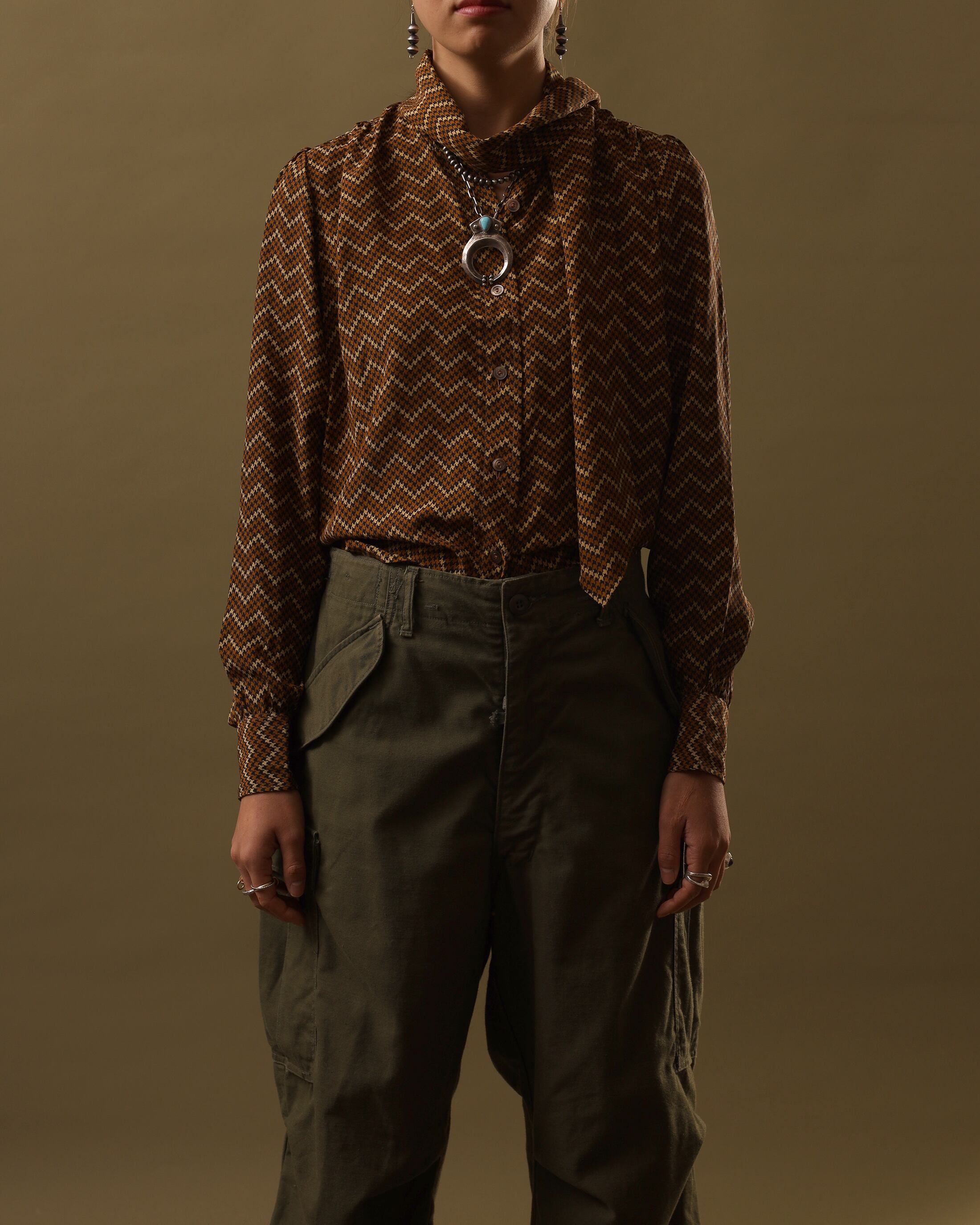 Era : c.1980 Label : YSL - Rive Gauche / Made in France Materials : Silk Condition : 目立ったキズやシミなし Color : Black,Camel,Beige Size : 身幅cm / 肩幅cm / 着丈cm / 袖丈cm *採寸は平置きで採寸しております。多少の誤差は御了承下さい。 Model:170cm Care : クリーニング