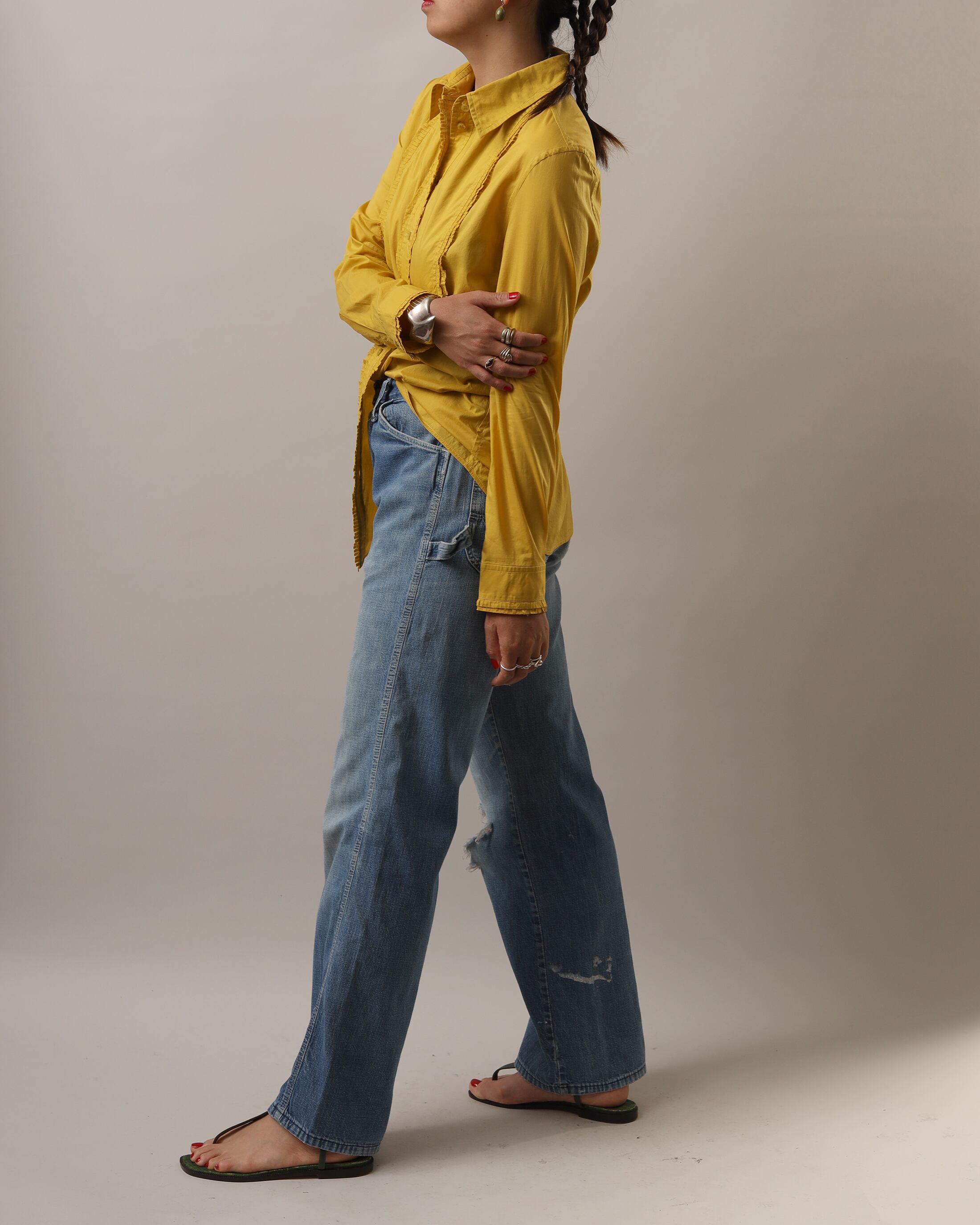 Era : c.2006 Label : Yves Saint Laurent - Rive Gauche / Made in Italy Materials : Cotton Condition : 目立った傷やシミなし Color : Mustard Yellow Size : 身幅50cm / 肩幅42cm / 着丈72cm / 袖丈61cm *採寸は平置きで採寸しております。多少の誤差は御了承下さい。 Model:170cm Care : 手洗い