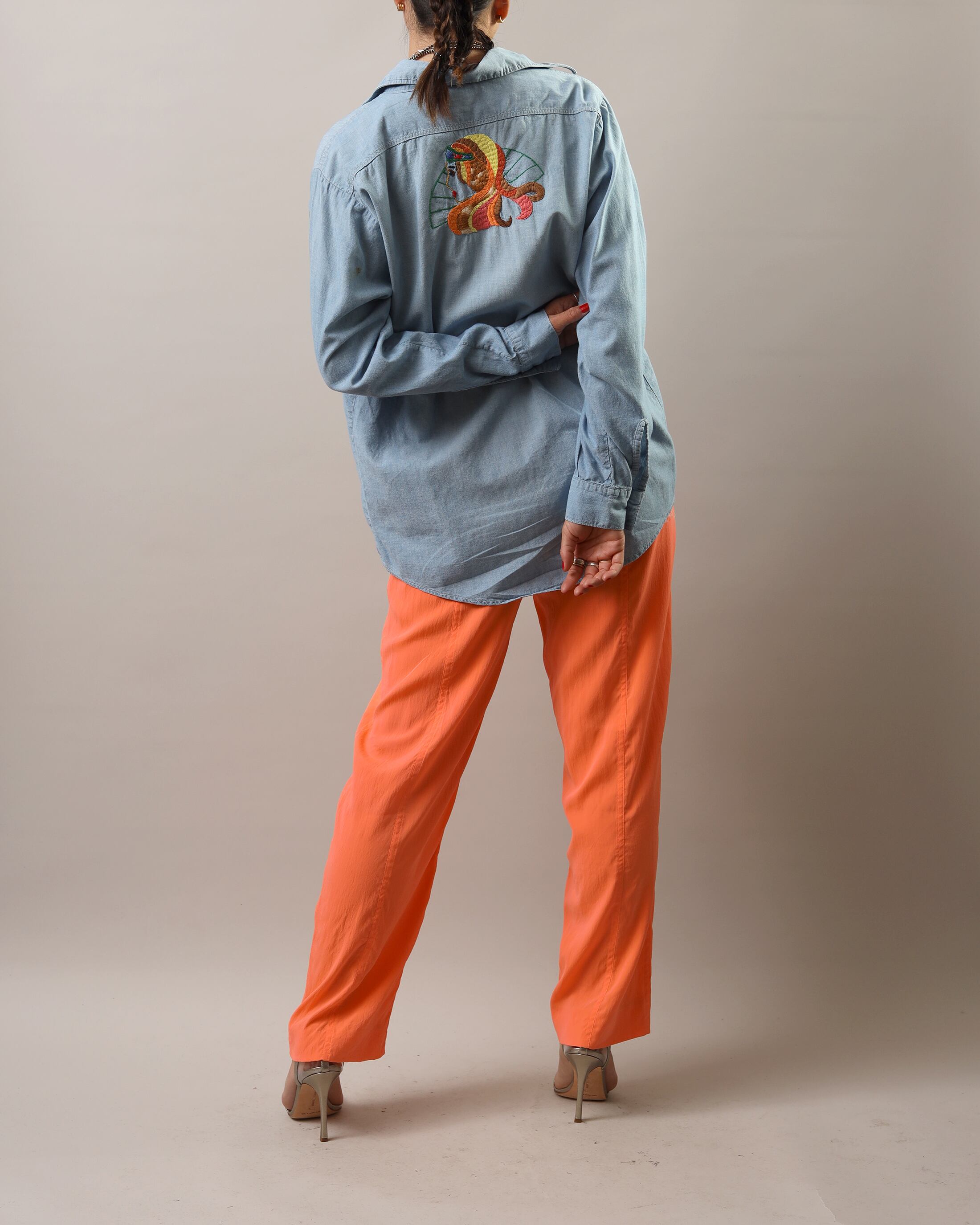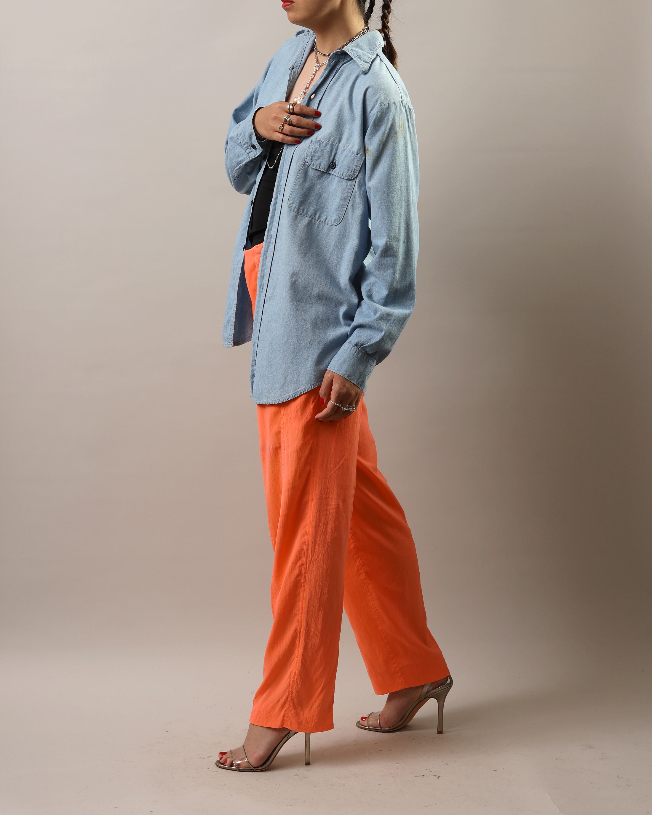 Era : c.1970-80 Label : C.R.Anthony Co. BUCKHIDE / Made in USA Materials : Cotton Condition : 左袖、襟にシミ、裾にほつれ Color : Light Blue Size : 身幅51cm / 肩幅44cm / 着丈77cm / 袖丈61cm *採寸は平置きで採寸しております。多少の誤差は御了承下さい。 Model:170cm Care : 手洗い