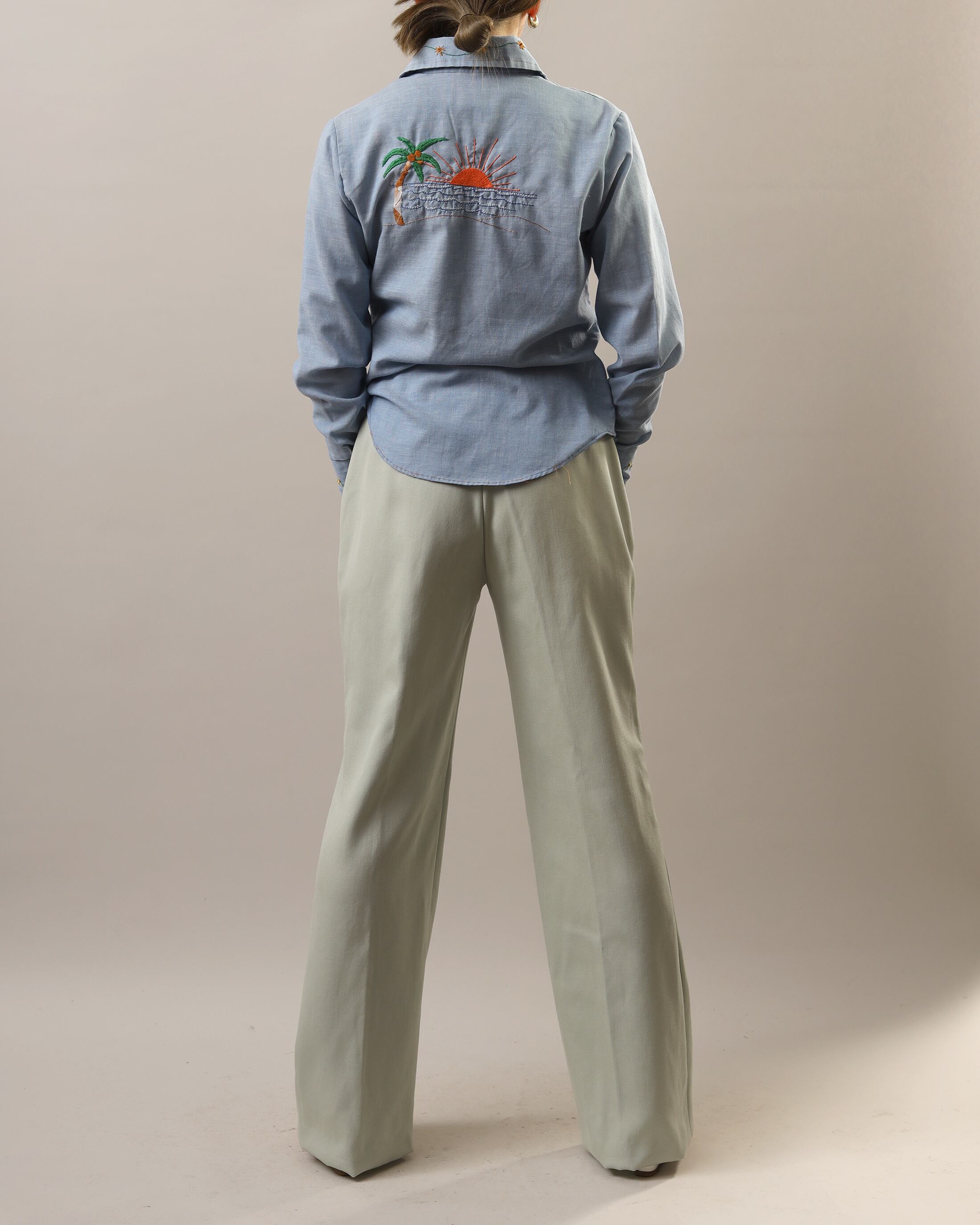 Era : c.1970-80 Label : Sears / Made in --- Materials : Cotton, Poly Condition : 所々刺繍ほつれ Color : Faded Light Blue Size : 身幅47cm / 肩幅38cm / 着丈60cm / 袖丈57cm *採寸は平置きで採寸しております。多少の誤差は御了承下さい。 Model:156cm Care : 手洗い