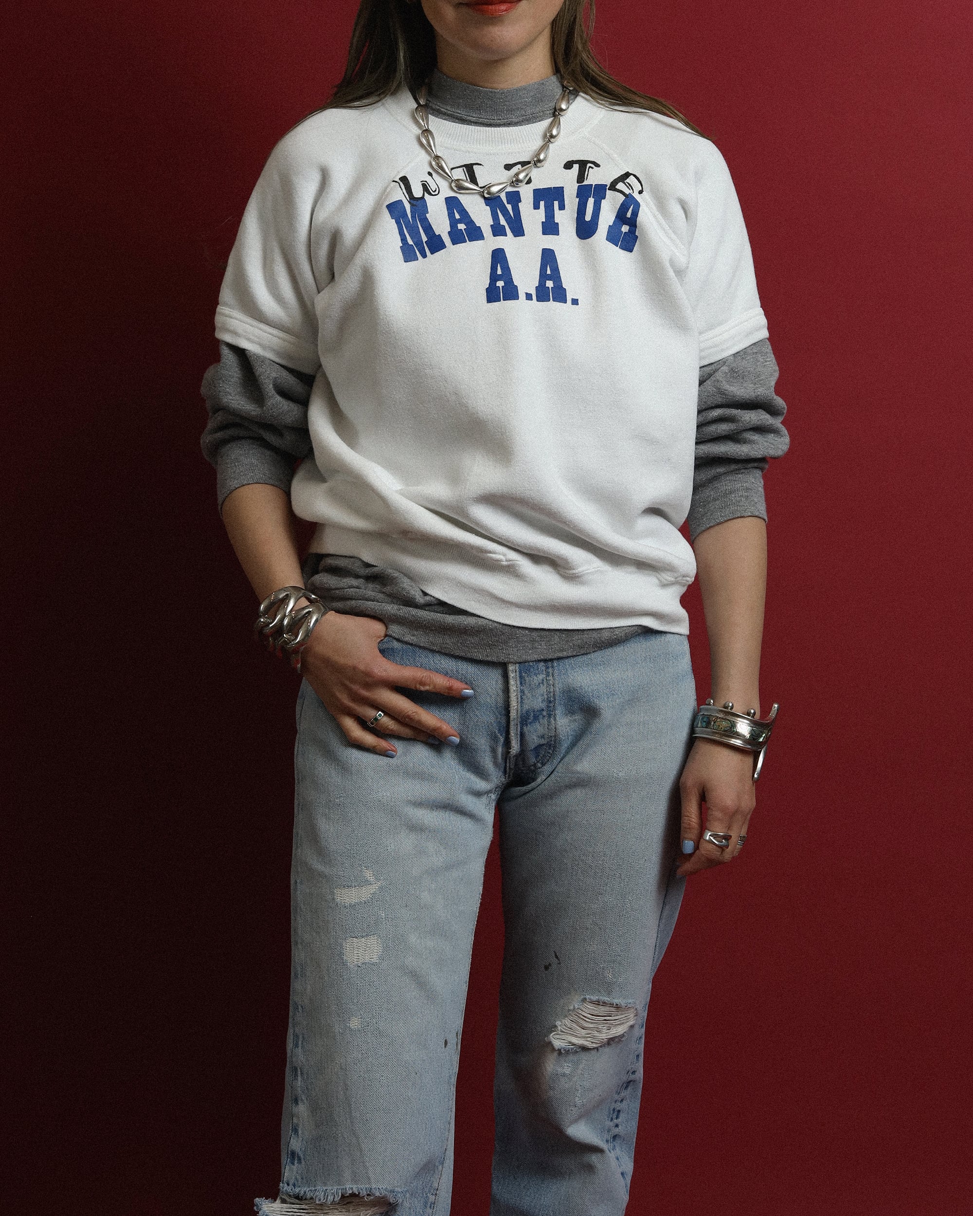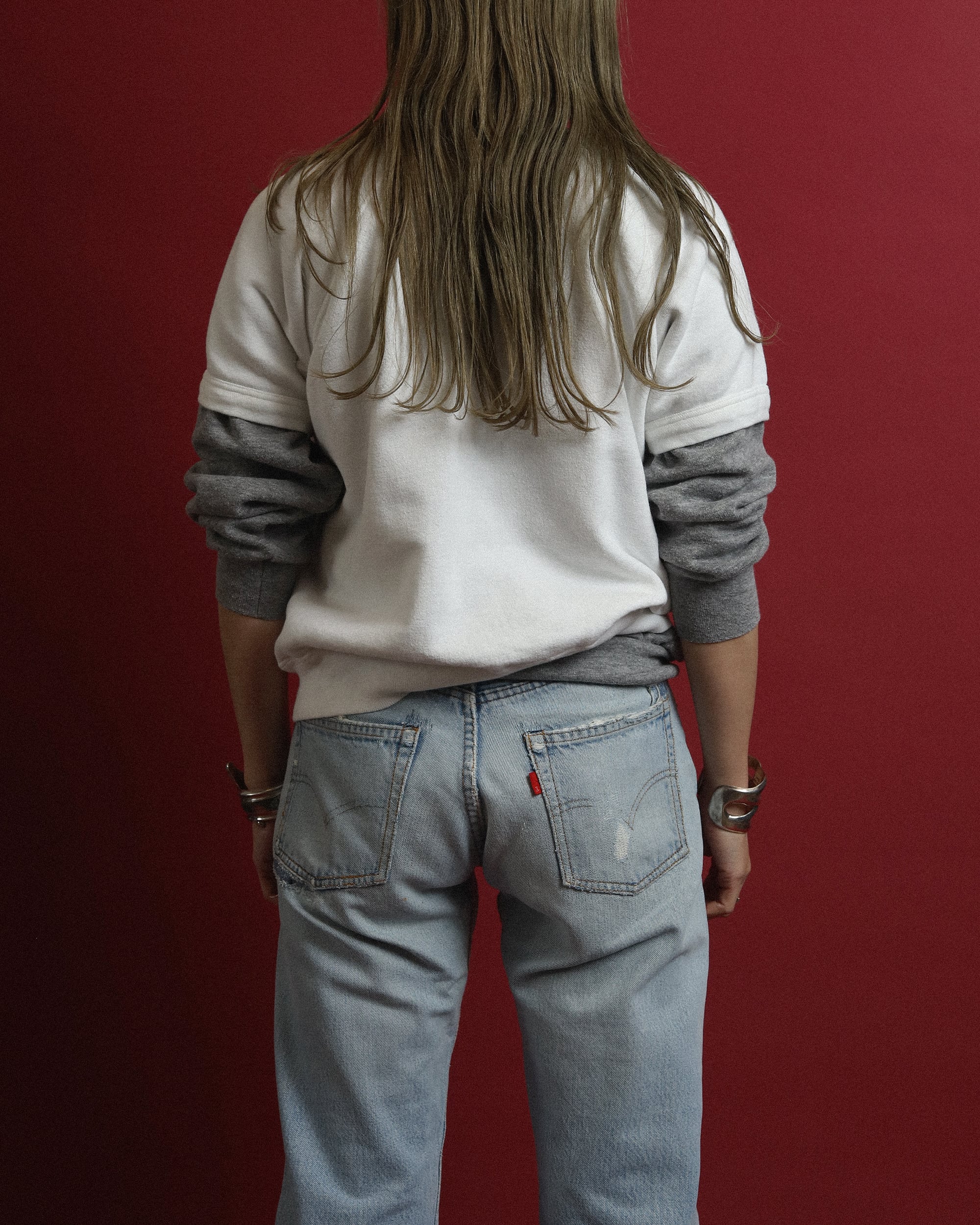 1950年代ヴィンテージTシャツに残されていた手書きの “WITTE” をモチーフに、オリジナルプリントとしてヴィンテージスウェットに落とし込みました。