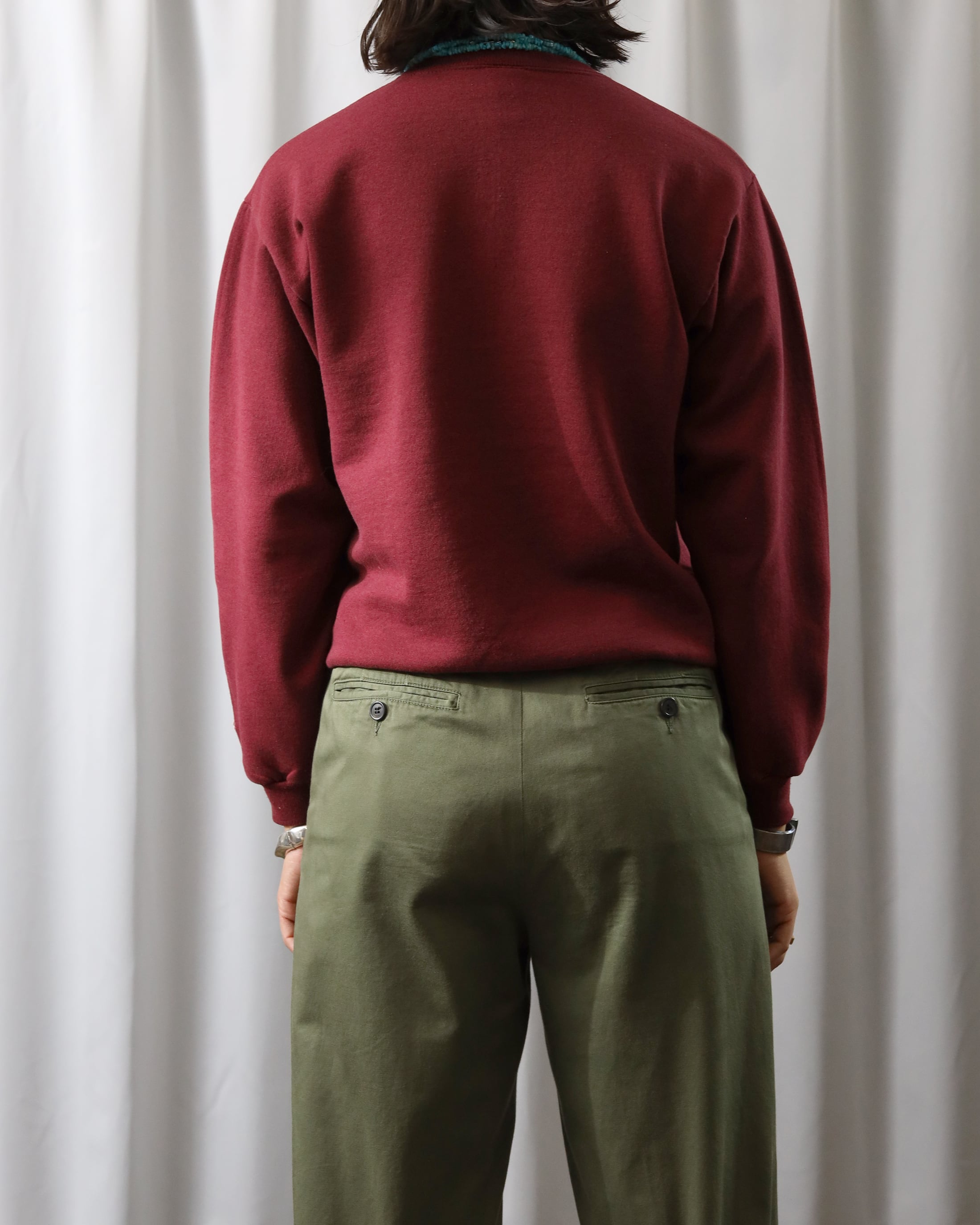 Era : c.1980 Label : Champion / Made in Mexico Materials : Cotton, Poly Condition : 前裾キズ, 左袖口ペンキ Color : Faded Burgundy Size : 肩幅45cm / 身幅49cm / 着丈58cm / 袖丈53cm *採寸は平置きで採寸しております。多少の誤差は御了承下さい。 Model:170cm Care : 色落ちの可能性があるため単品手洗い