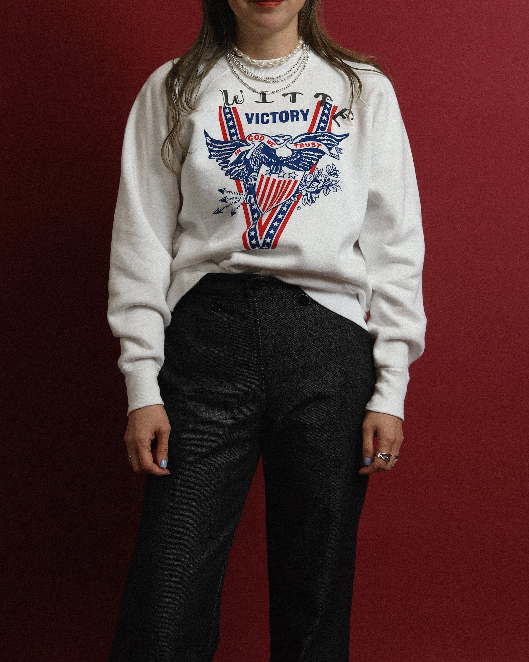 1950年代ヴィンテージTシャツに残されていた手書きの “WITTE” をモチーフに、オリジナルプリントとしてヴィンテージスウェットに落とし込みました。
